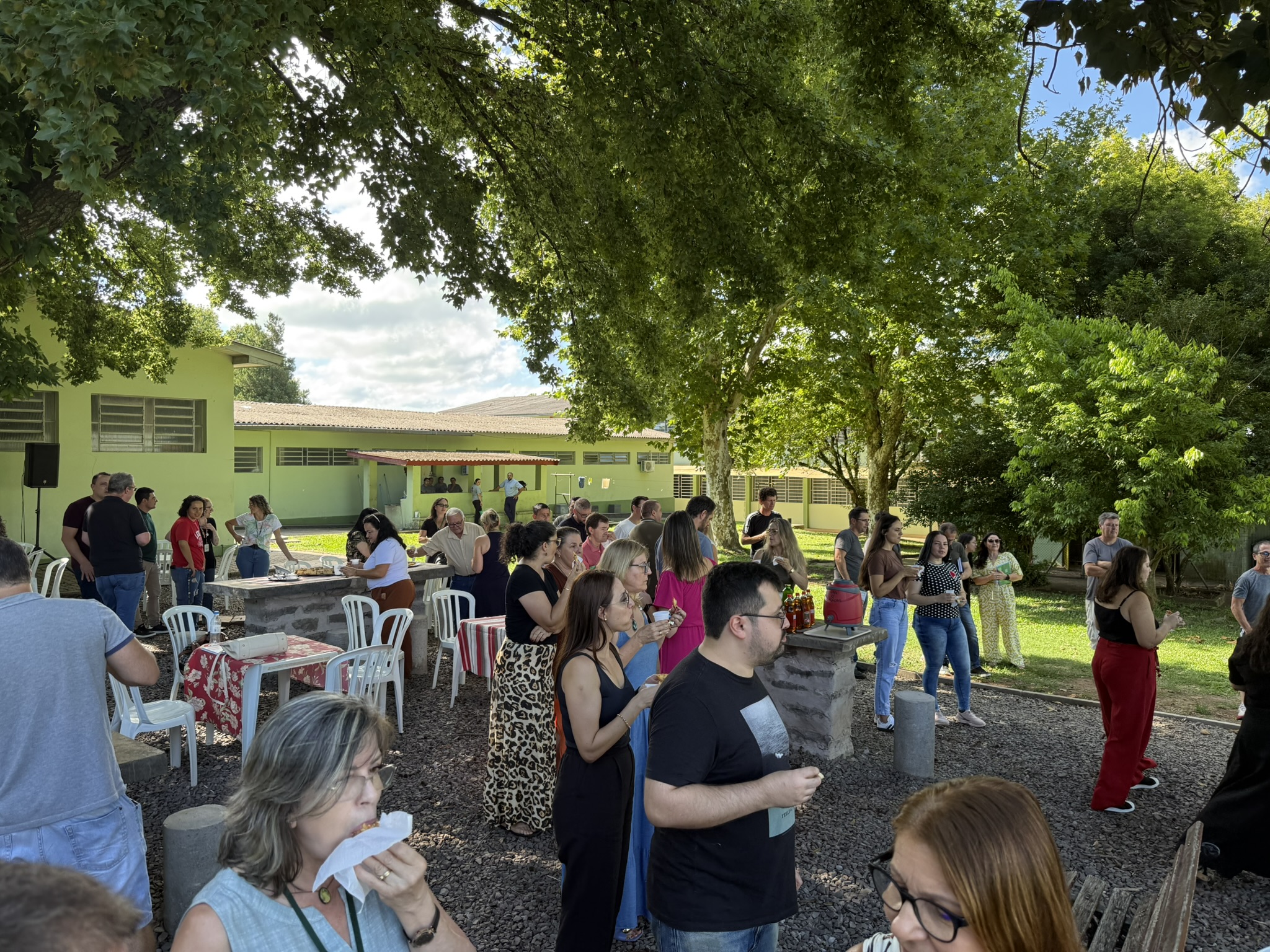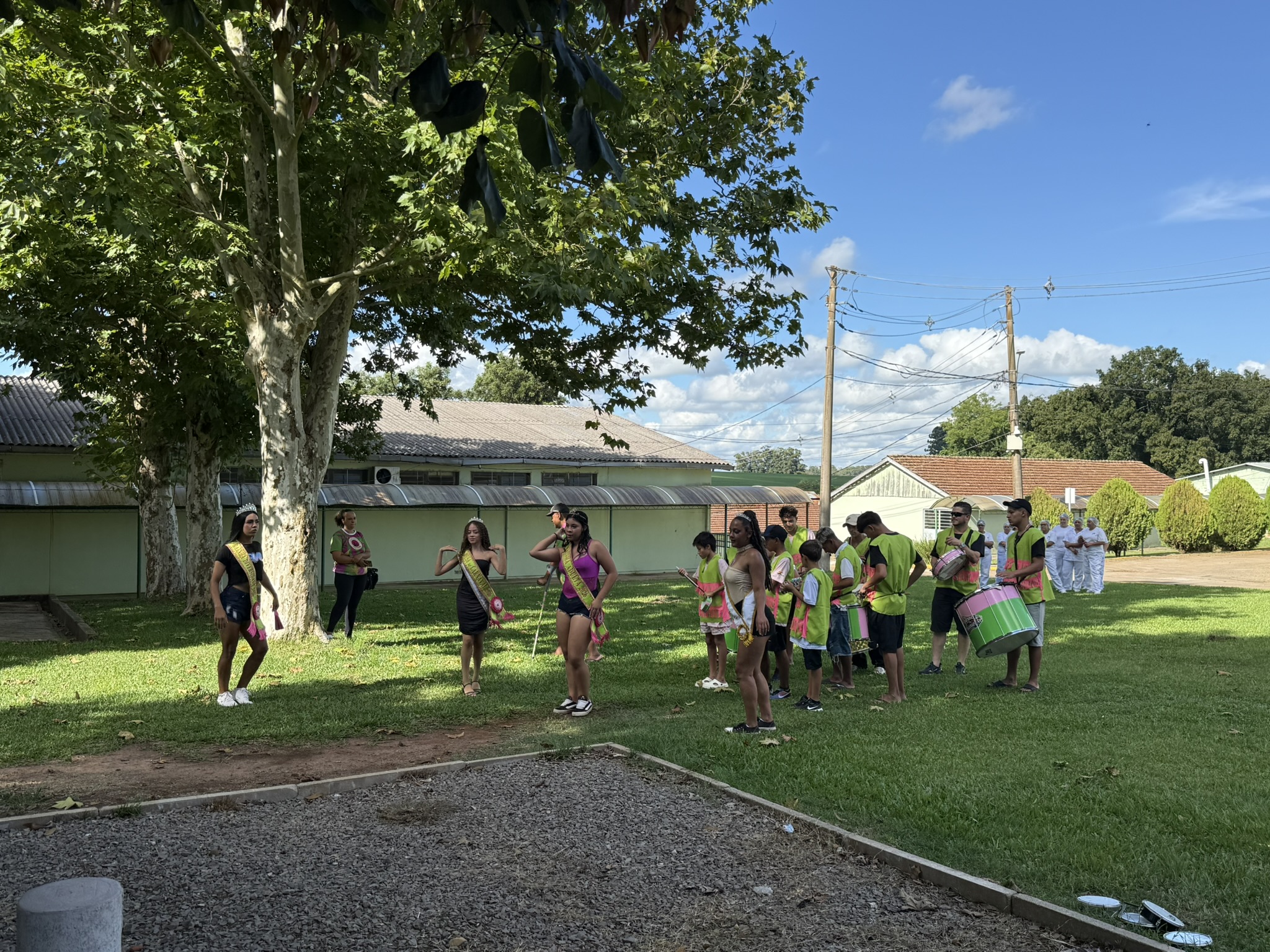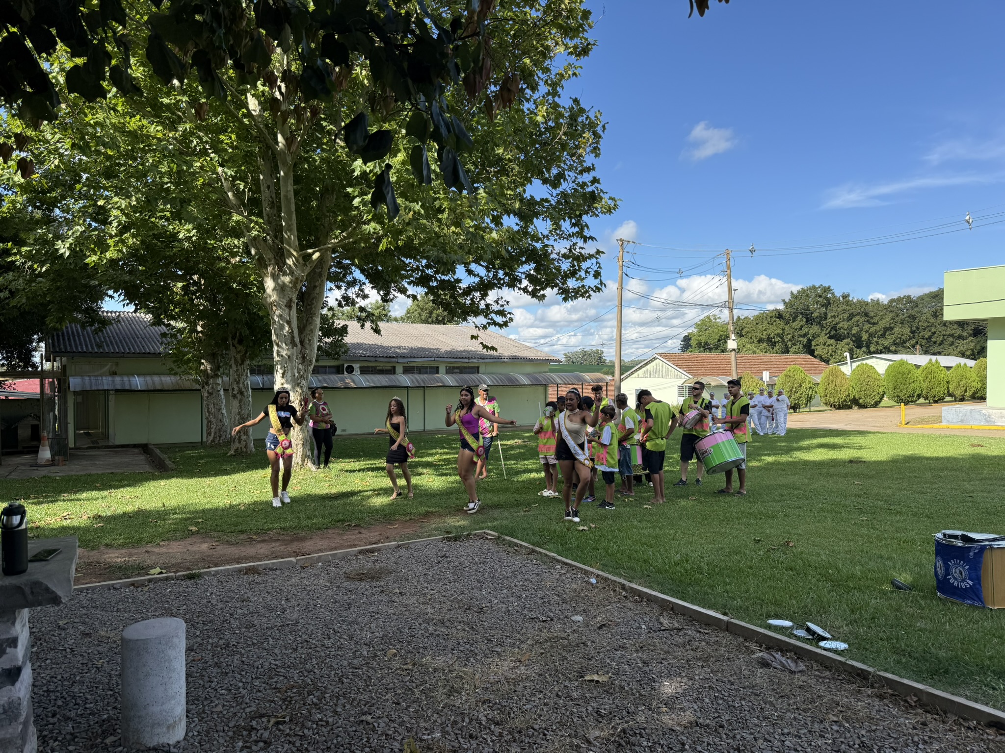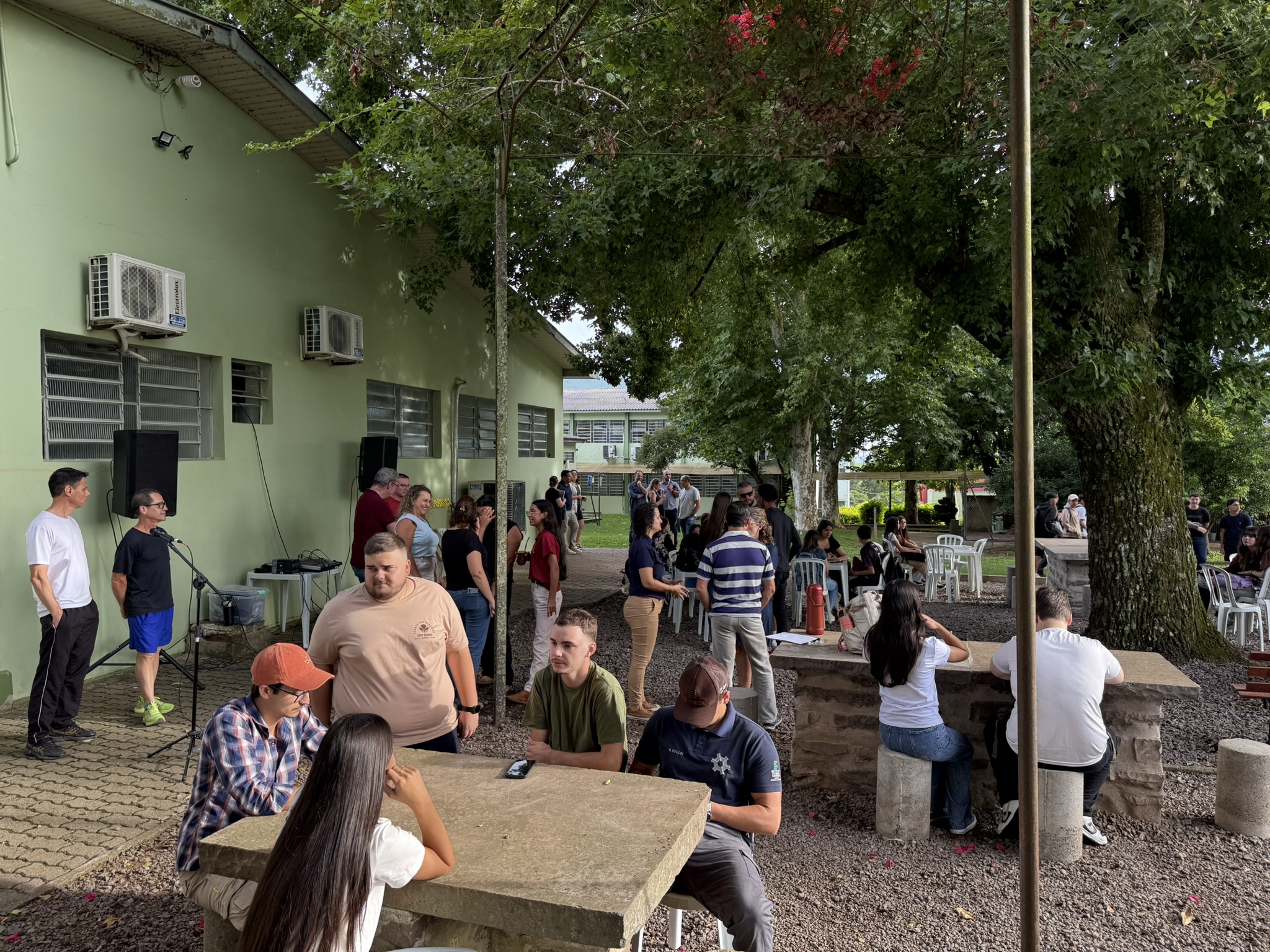Após a cerimônia, a programação seguiu com um lanche de confraternização nas chamadas “mesas de pedra” do campus e apresentações culturais de duas escolas de samba de Júlio de Castilhos: a Escola Acadêmicos da Vila União/Furiosa e a ACES José do Patrocínio, proporcionando um momento de integração entre servidores e convidados.