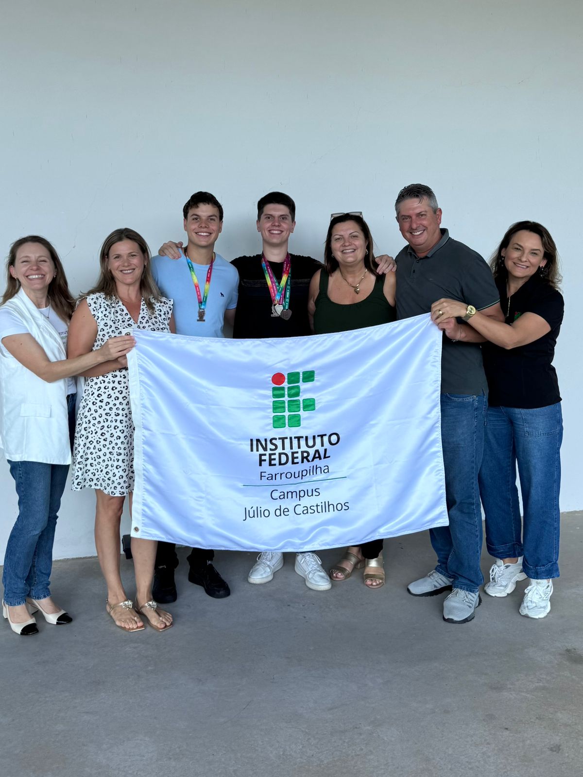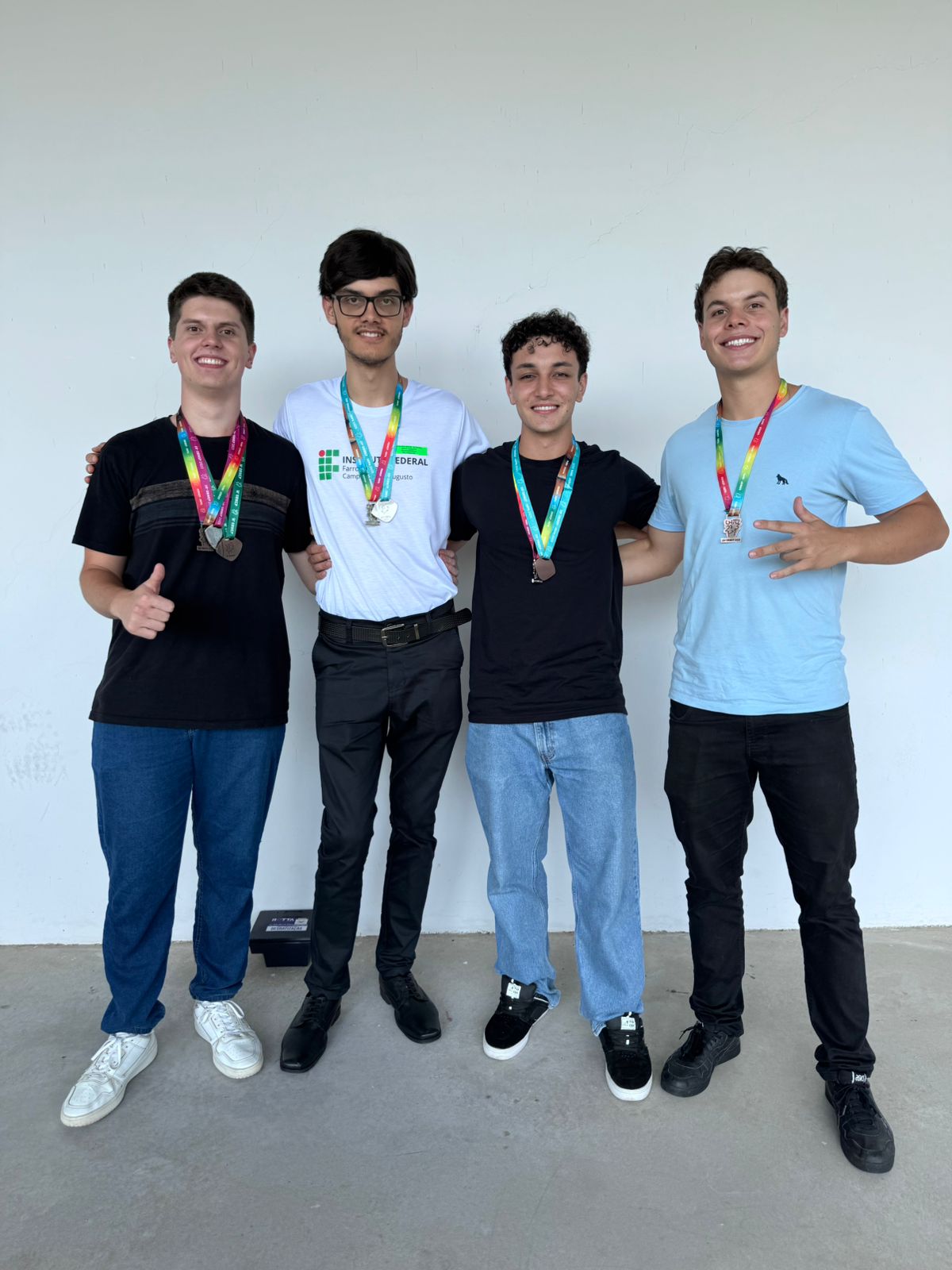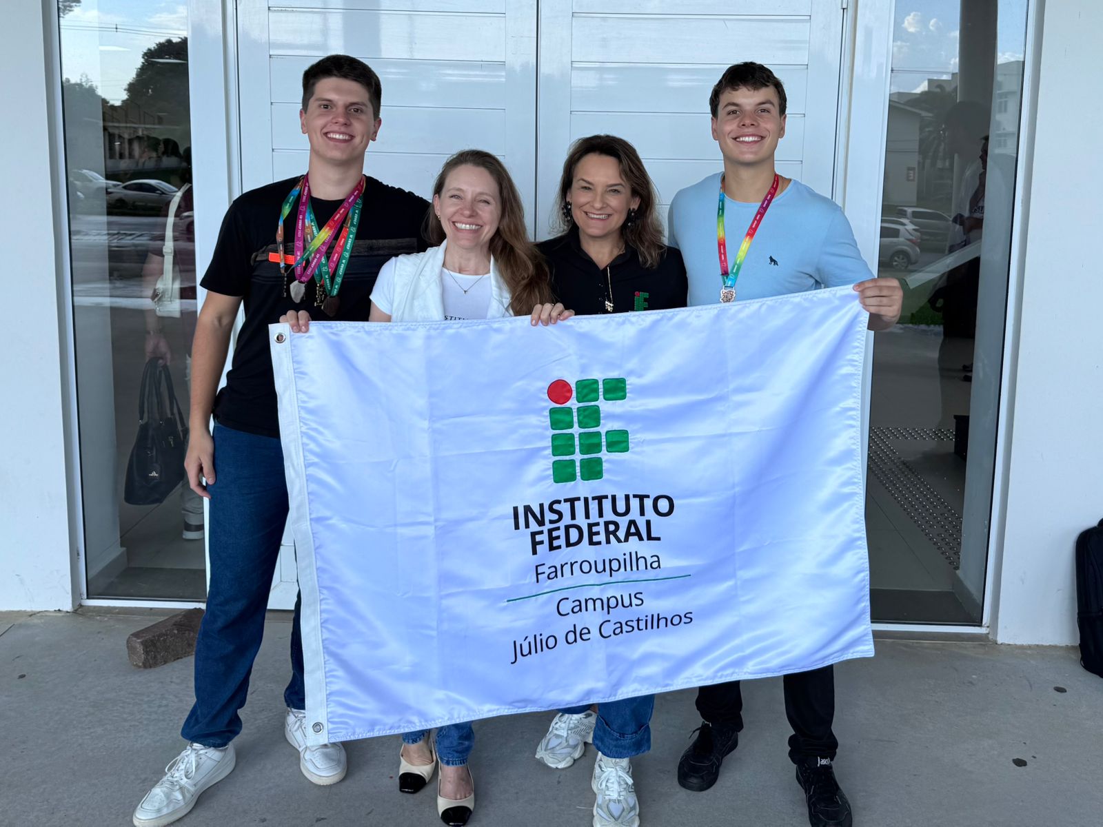 Gustavo e Leonardo com os outros estudantes do IFFar que também ganharam medalhas