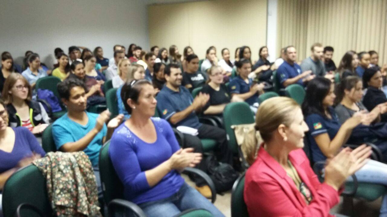 O curso de licenciatura em Ciências Biológicas está desenvolvendo um projeto de educação ambiental inserido na disciplina PeCC- VII (Bio 1) que visa, entre vários objetivos, consolidar a coleta seletiva no campus. Dentre as atividades sensibilizadoras realizou-se no dia 06 de abril de 2016 no anfiteatro a oficina com a professora e educadora popular Begair do Carmo Flores, que abordou diversos aspectos humanos da ecologia. A atividade foi prestigiada pelos alunos e professores do curso e coordenada pelos professores: Elenir Mousquer, Mariana Durigon e Rodrigo Konig.