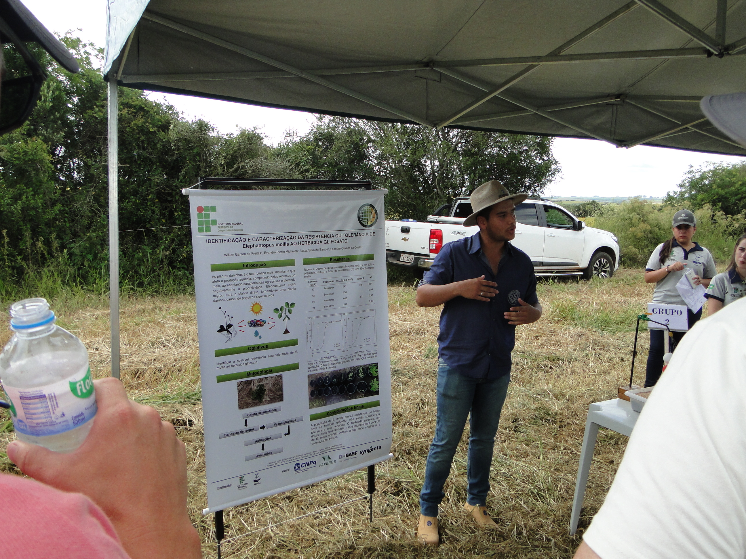 Os participantes da tarde de campo tiveram a oportunidade de apreciar ensaios de 48 cultivares de soja, tanto lançamentos quanto adaptações para a região; tecnologias para o manejo de plantas daninhas e prevenção da resistência a herbicidas; manejo de doenças, nutrição de plantas; manejo da física do solo e alternativas para enfrentar problemas relacionados a compactação; sensoriamento remoto utilizando veículos não tripulados na agricultura; manejo biológico e novas alternativas de mercado na cultura da soja. O evento contou com a participação de 280 pessoas, entre elas, 120 produtores de diversas regiões do estado e 160 alunos ligados aos cursos de nível superior e técnico do IFFar - JC. A II Tarde de Campo do IFFar-JC cumpriu com seu objetivo de atingir o maior número possível de participantes externos ligados a área da agricultura, ou seja, produtores e técnicos.