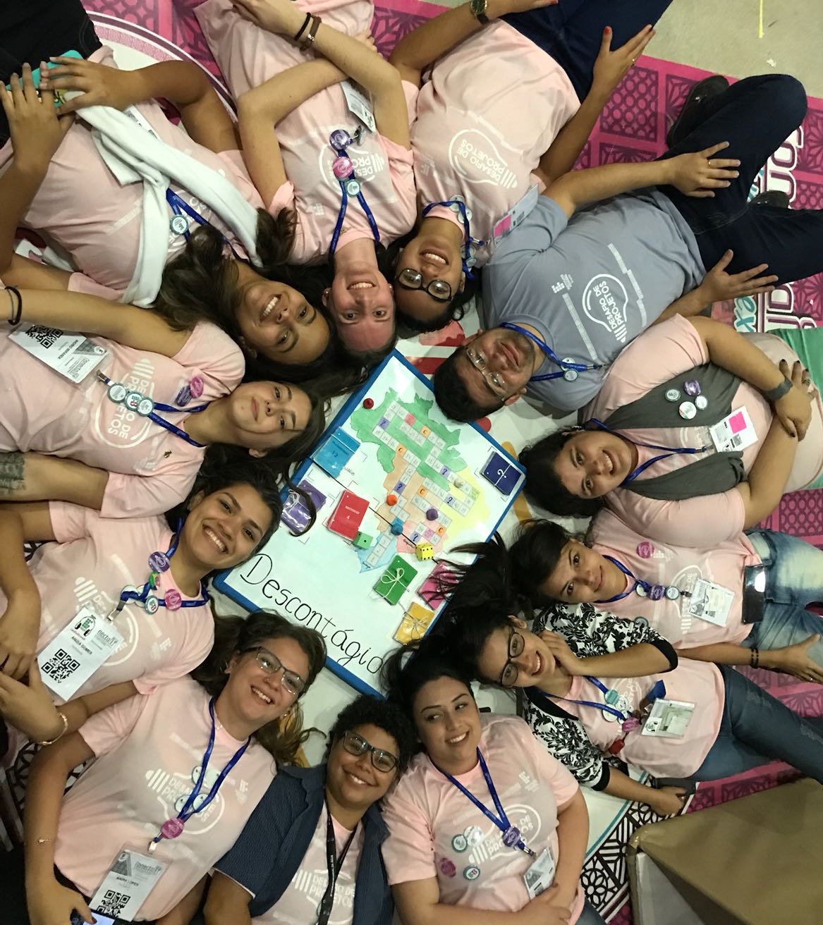 O “Meninas na Ciência” objetivou fomentar a participação de estudantes do sexo feminino em um evento de ciência e tecnologia cujo desafio consistiu em criar formas inovadoras de ensino de química, física, matemática e biologia para estudantes de Ensino Médio. Após serem divididas em grupos, de acordo com as áreas de formação, as meninas participaram de uma imersão de quatro dias, cujo resultado foi a criação de diferentes recursos para o ensino das ciências, de acordo com cada uma das áreas específicas. Karine participou do grupo de biologia, que apresentou dois projetos baseados em gamificação, que consiste em aplicar o conceito dos jogos ao cotidiano. Assim surgiu o site “Science4All”, que disponibiliza jogos que podem ser utilizados como recursos didáticos para ensinar diferentes conteúdos. Um dos jogos é o “DNA Connect”, que aborda conteúdos relacionados à genética biomolecular, que trabalha as ligações entre as bases nitrogenadas para montar a molécula de DNA/RNA, formando as proteínas. O outro jogo chama-se “Descontágio”, que aborda de forma dinâmica e divertida as zoonoses de importância para as diferentes regiões do território brasileiro, possibilitando o aprendizado dos alunos por meio de uma inovadora estratégia de ensino desse conteúdo.
