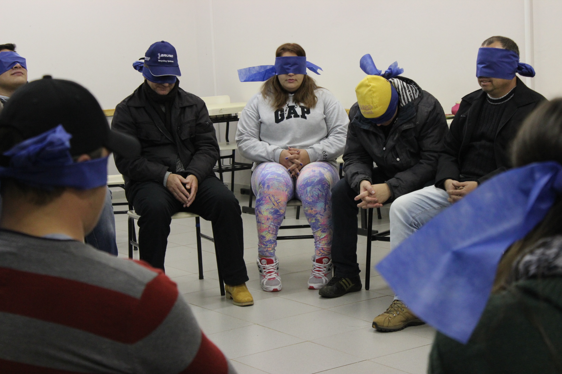 A proposta consistiu na execução de uma dinâmica com perguntas aos alunos em cada uma das turmas participantes sobre assuntos pertinentes aos núcleos inclusivos, tais como preconceito étnico, orientação sexual, deficiência física, modos de vestir, etc. As respostas a cada pergunta foram respondidas mediante palmas. Os alunos utilizaram vendas durante a realização das perguntas, o que os deixou à vontade parar refletir sobre as afirmações lidas e manifestar sua posição, sem o risco do julgamento dos colegas.
