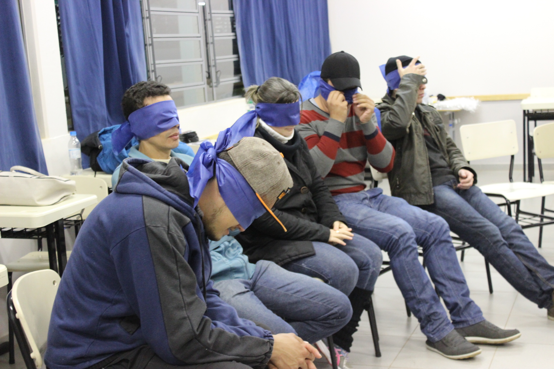 Ao final da atividade, todos participaram do debate, sem as vendas, fazendo do espaço escolar um local propício a (re)pensar os preconceitos e estigmas atribuídos principalmente a mulheres/gays/negros/indígenas e pessoas com deficiência.