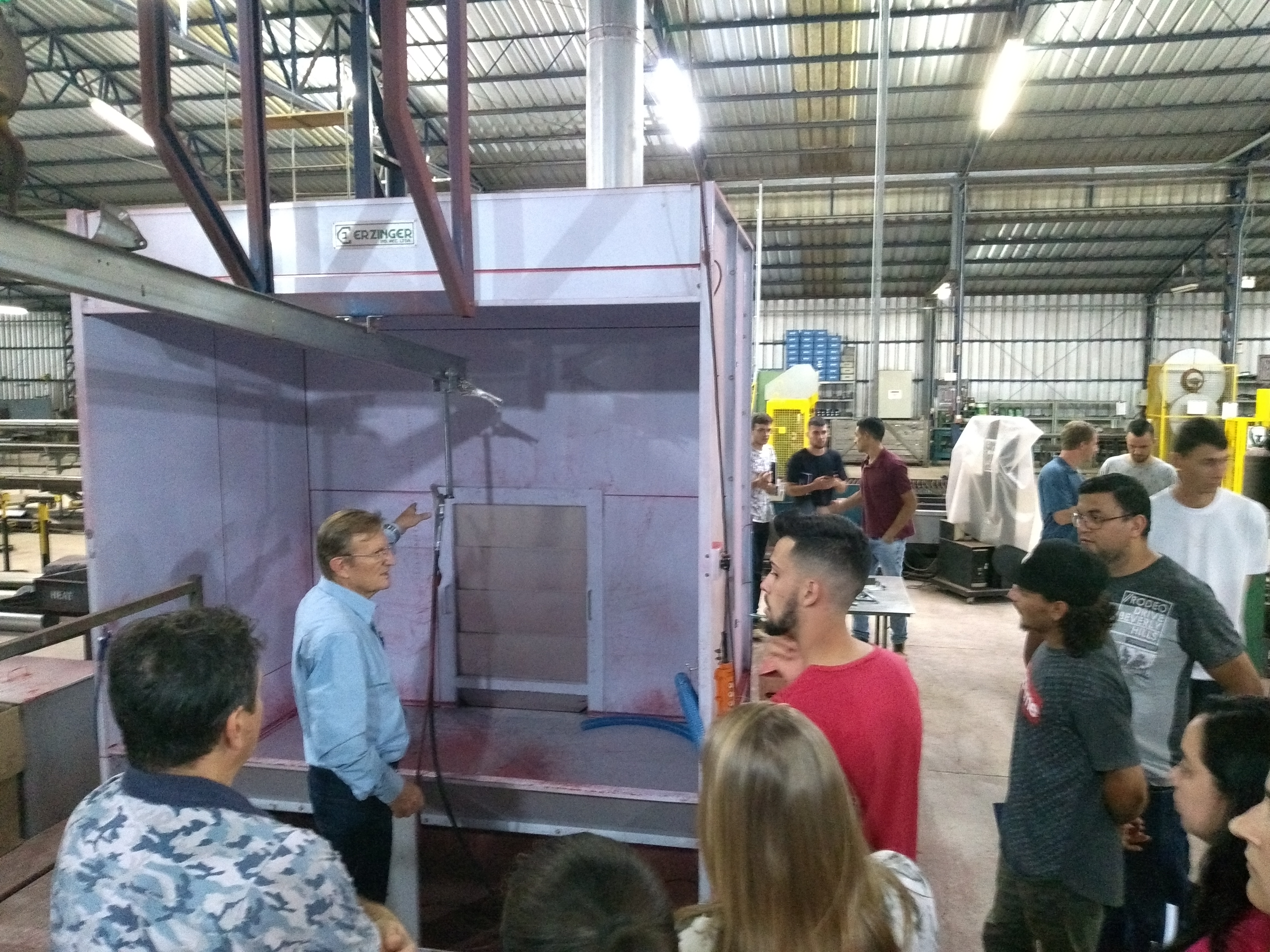 - Em um segundo momento, o Sr. Henrich Dück, Diretor Comercial da Empresa, recepcionou a todos na área da planta industrial, apresentando todos os processos e máquinas, além de imagens de algumas obras em que as lareiras foram instaladas.
