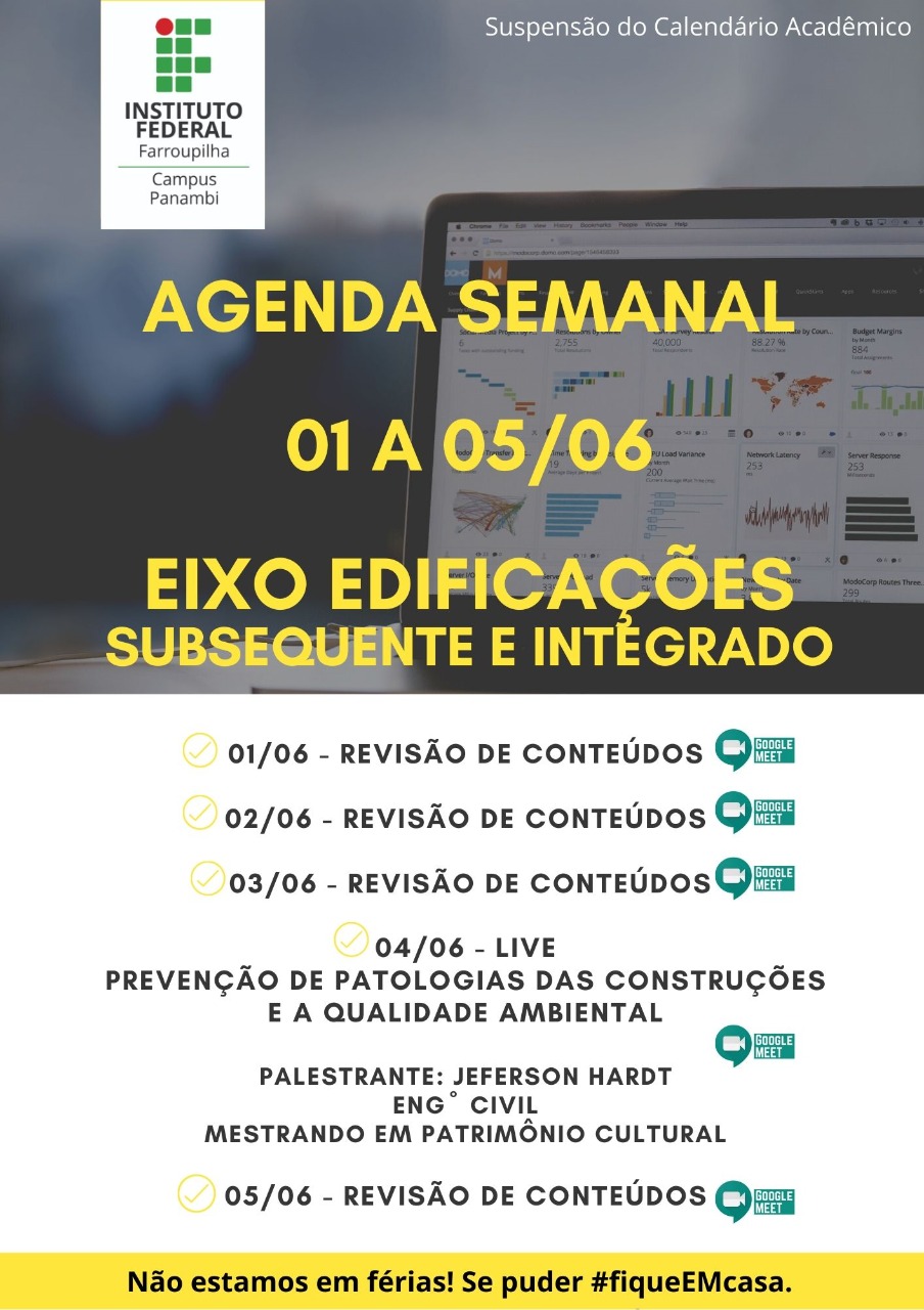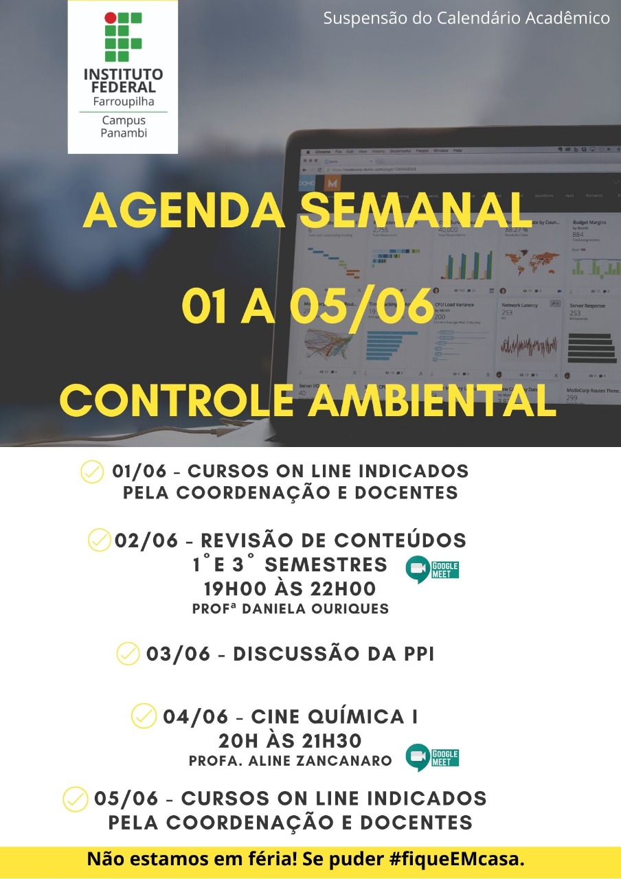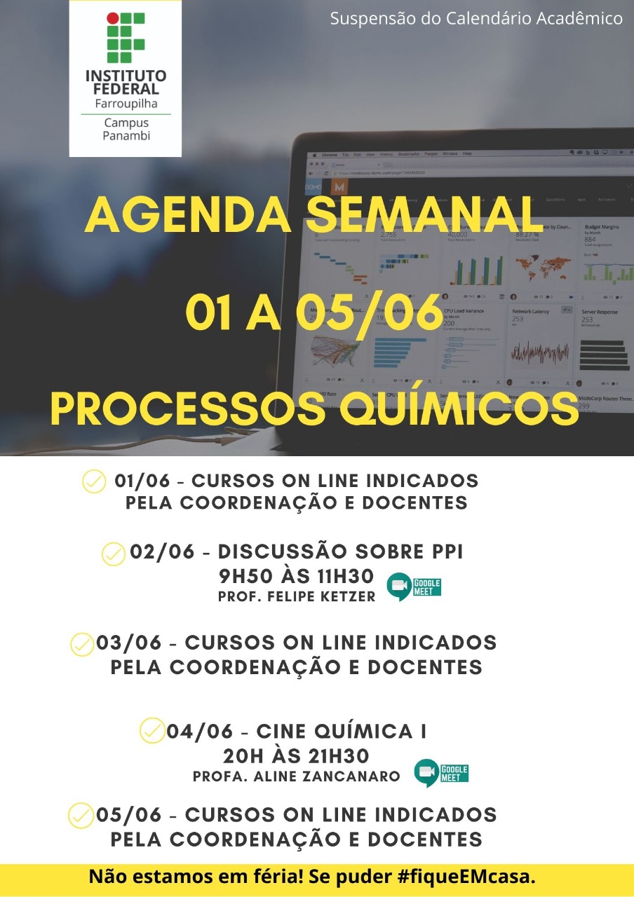 A cada semana, uma agenda contendo as ações que serão desenvolvidas por cada curso, será divulgada no portal institucional e nas redes sociais do Campus Panambi.
