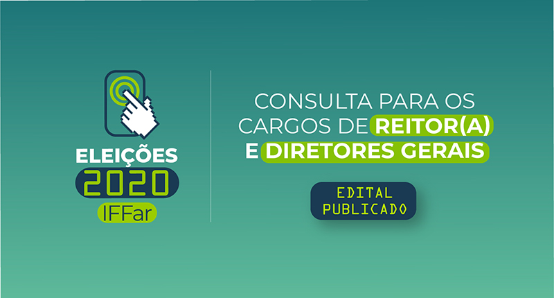Foi publicado nesta quinta-feira o edital nº 242/2020, que instaura e regulamenta o processo de consulta para os cargos de Reitor(a) e de Diretores(as) Gerais dos campi do IFFar - Quadriênio 2020/2024. Confira na página das eleições.