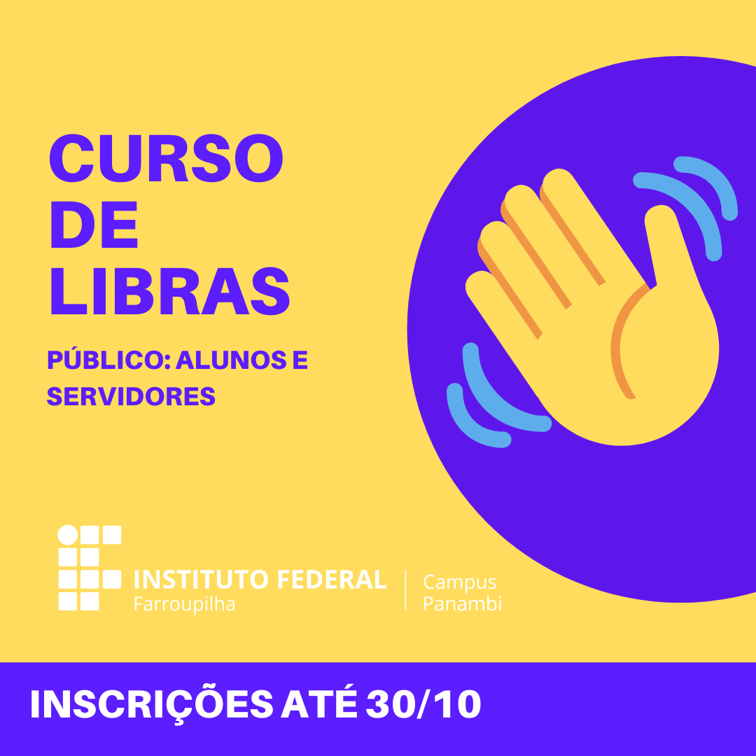Entre os dias 26 e 30 de outubro alunos e servidores do Campus Panambi podem se inscrever para realizar o Curso Básico de Libras. Os encontros síncronos ocorrerão nas quartas-feiras, entre 13h30min e 14h30min, entre 4/11/2020 e 09/12/2020.