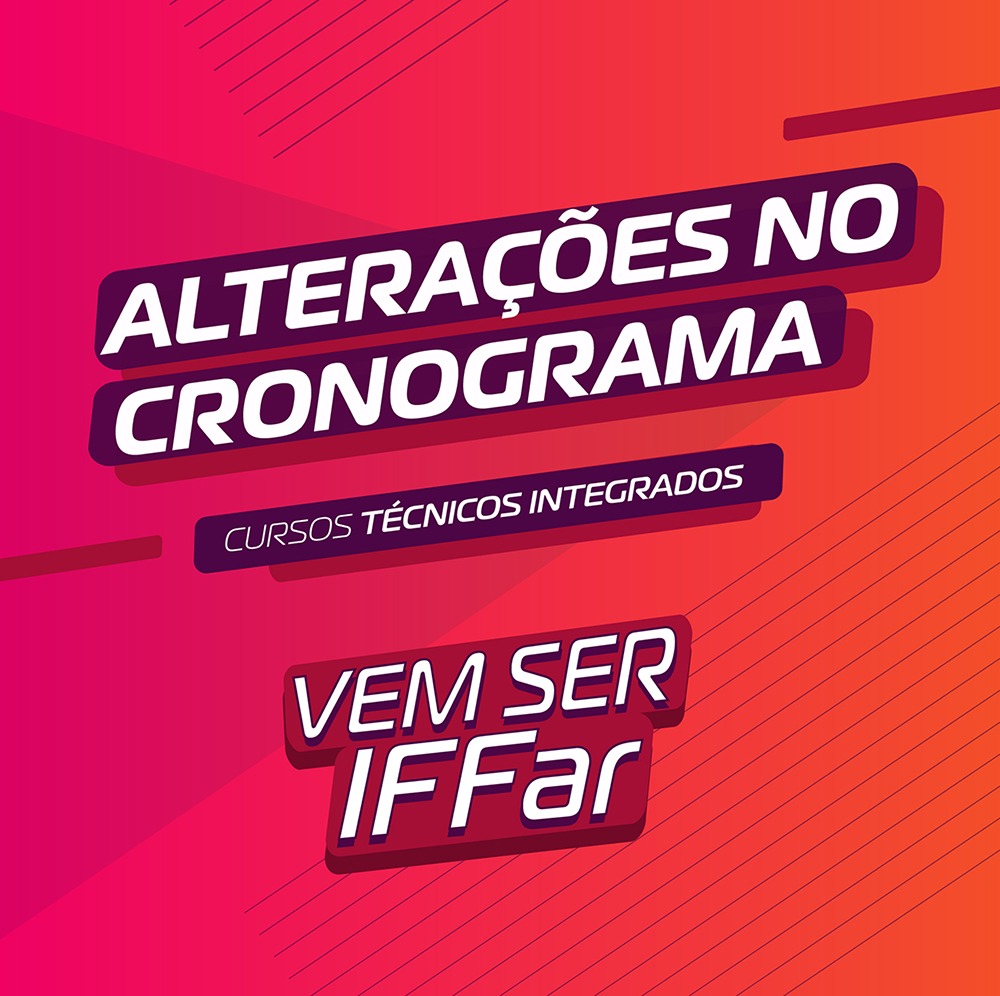 Nesta quarta-feira (6), por meio do edital nº 002/2021, o IFFar publicou alterações no cronograma do Processo Seletivo dos Cursos Técnicos Integrados ao Ensino Médio. O sorteio eletrônico para seleção de candidatos e candidatas agora será realizado no dia 27 de janeiro.