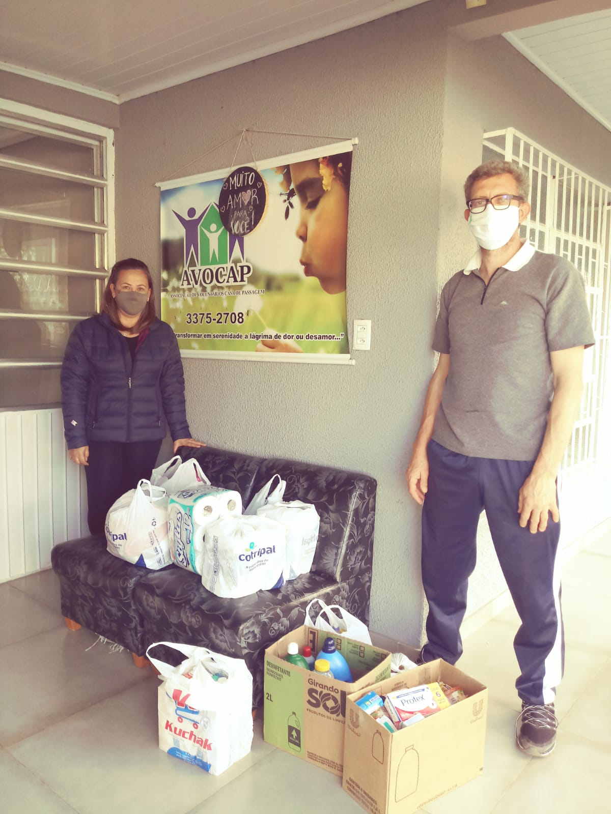 #PraTodosVerem Sequência com 5 fotos de estudantes realizando suas doações no Campus, além de 2 fotos mostrando parte dos produtos arrecadados e 1 foto da entrega de doações na Avocap, em Panambi.