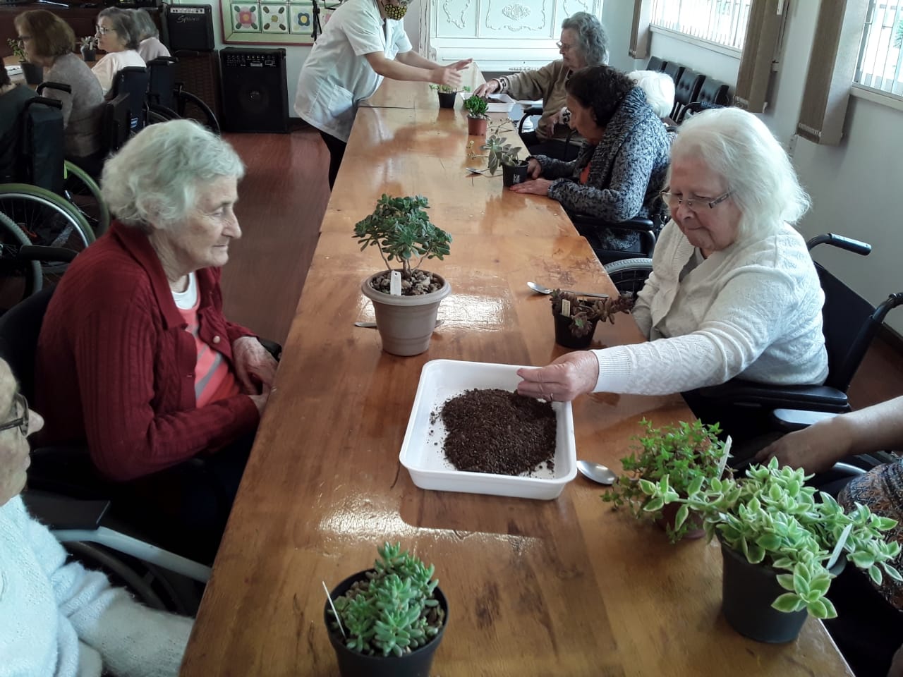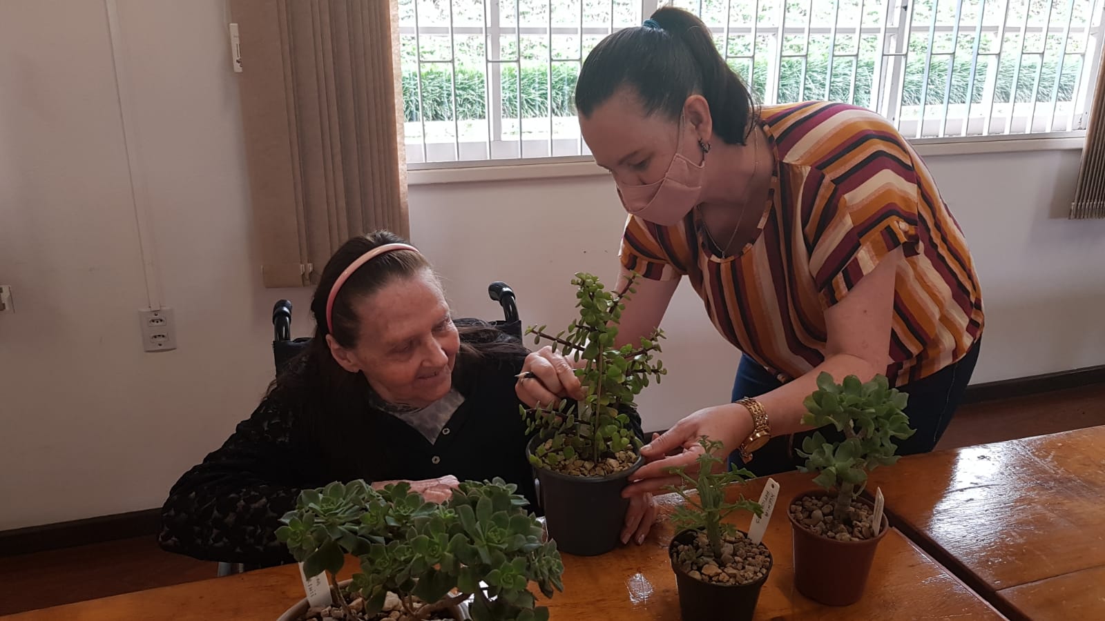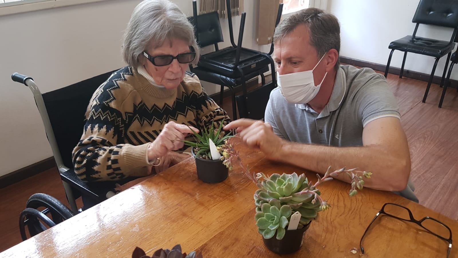 Para possibilitar a participação de todos os moradores, as atividades de plantio priorizam o cultivo em vasos, permitindo o envolvimento daqueles que possuem algum tipo de limitação de movimento. Nesse sentido, a proposta inicial é centrada no cultivo de plantas ornamentais que sejam de fácil manuseio e manutenção, tais como as diferentes espécies de suculentas. E, a fim de atender a maioria das preferências e evitar a exclusão daqueles que não gostam do cultivo de plantas ornamentais, será proposto o cultivo de plantas em uma mini horta vertical, além da montagem de uma pequena hidroponia. Ainda, cabe destacar que os idosos possuem participação ativa nas atividades de escolha da espécies a serem plantadas, assim como em todas as etapas de cultivo, manuseio e cuidado com as plantas.