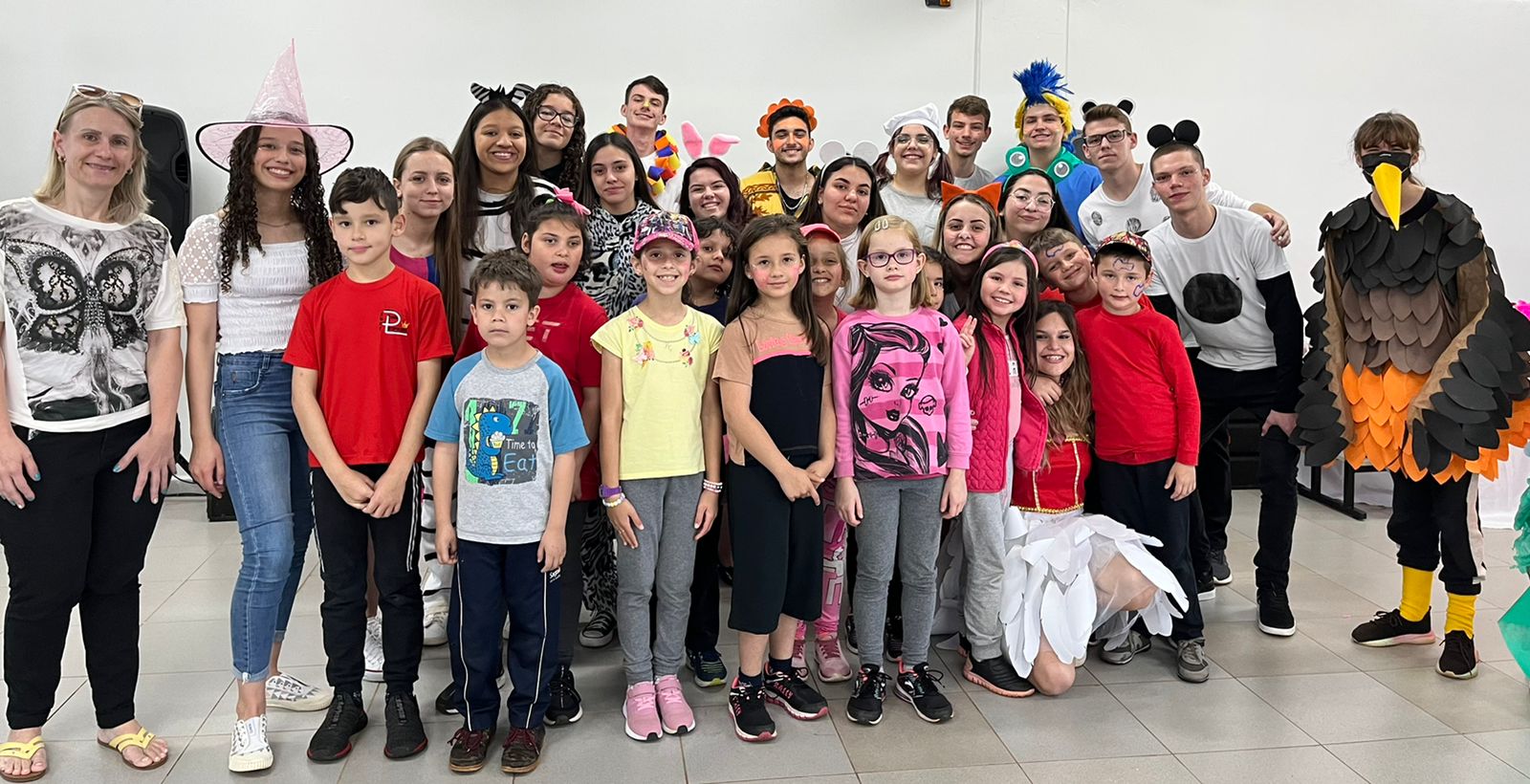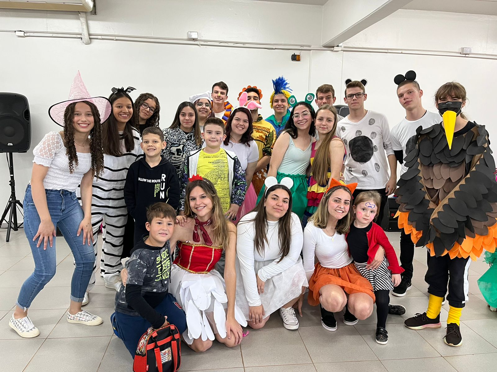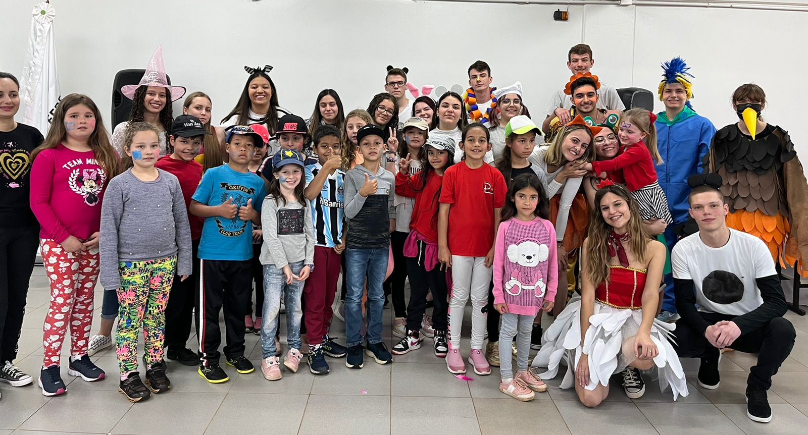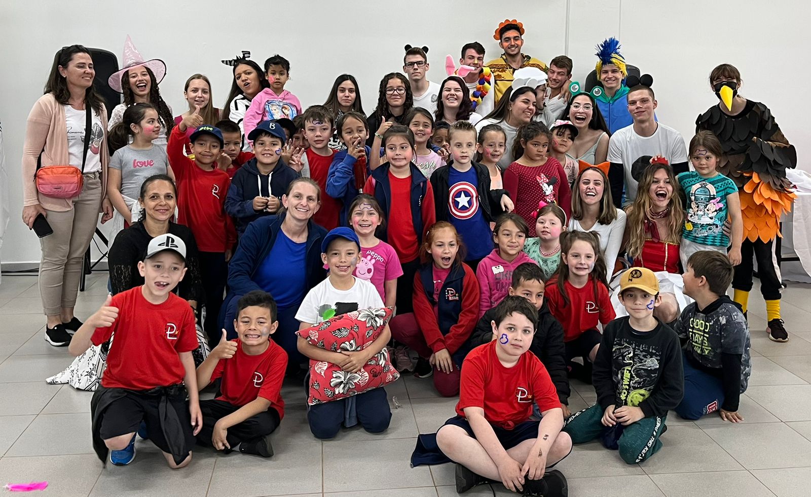 Na manhã de quarta-feira, 09/11, integrantes do projeto “Fábrica de Histórias”, do IFFar – Campus Panambi, receberam estudantes do 1º e 2º ano do Ensino Fundamental da Escola Municipal Dona Leopoldina para apresentação de três obras teatrais. As histórias de “Chica, a galinha caipira”, “O Leão Leonel” e “Akira, o panda” foram encenadas por um grupo de estudantes de cursos do Ensino Médio do IFFar, coordenados pela professora Miquela Piaia, docente de língua inglesa do Campus.
