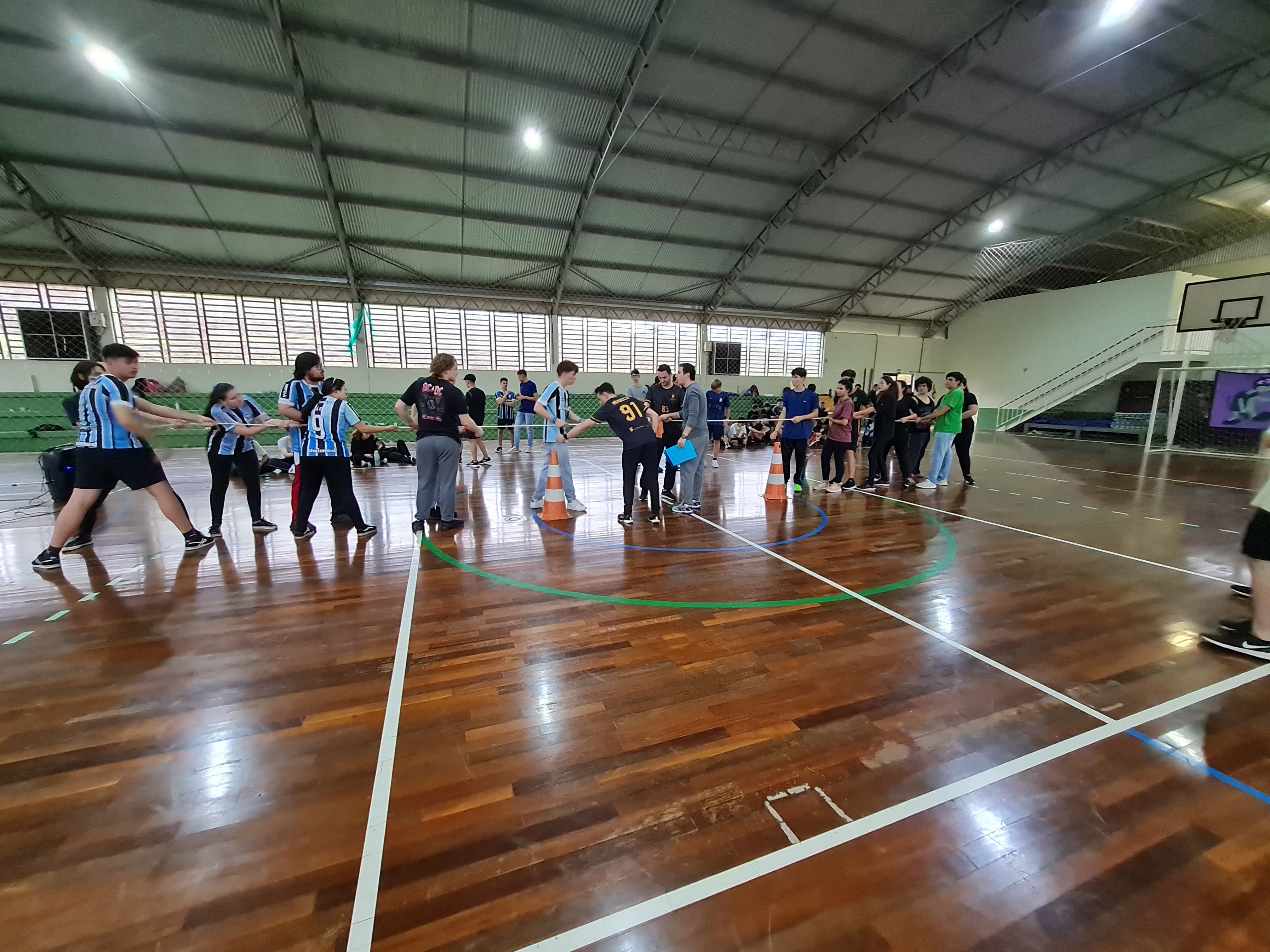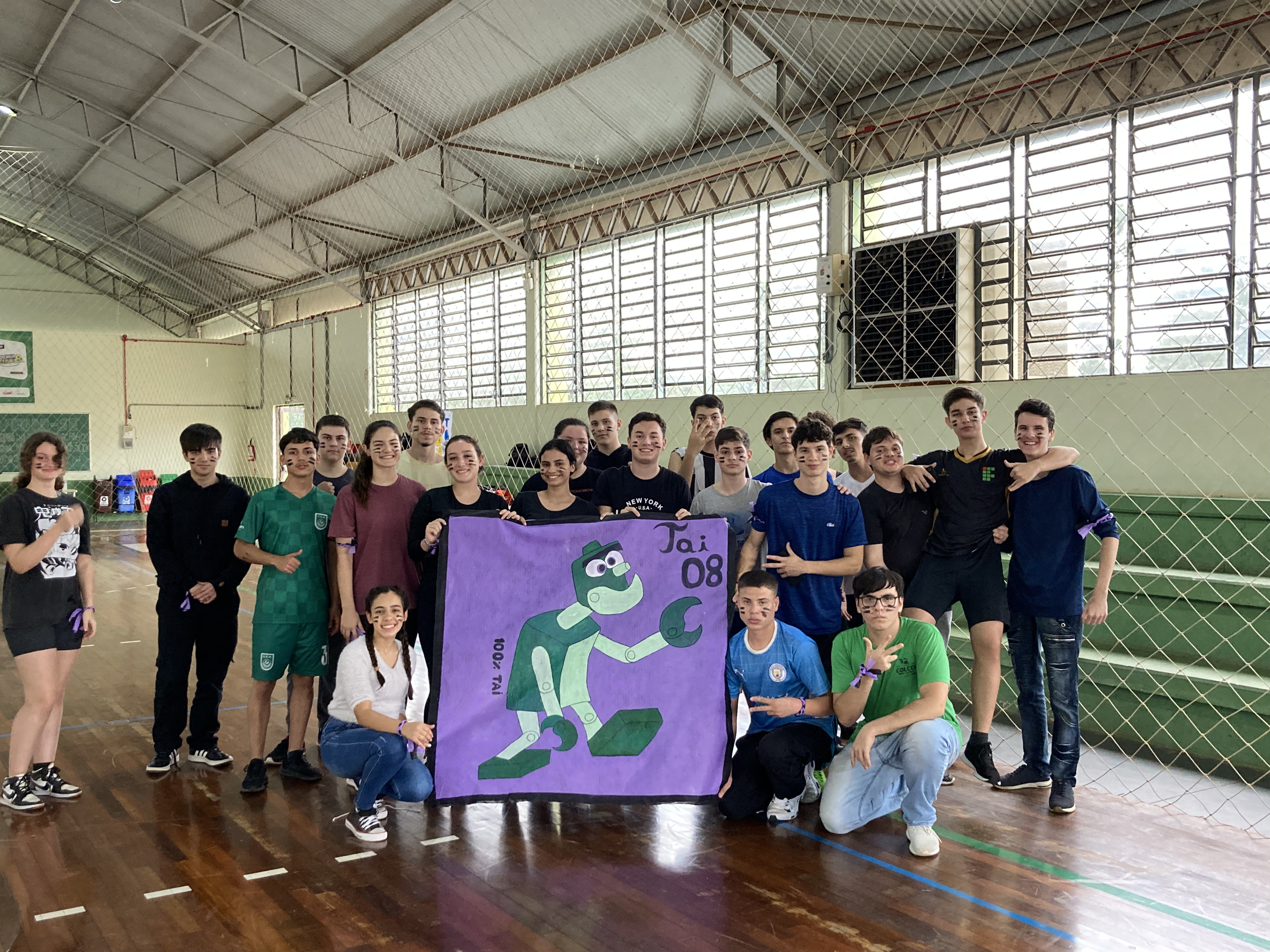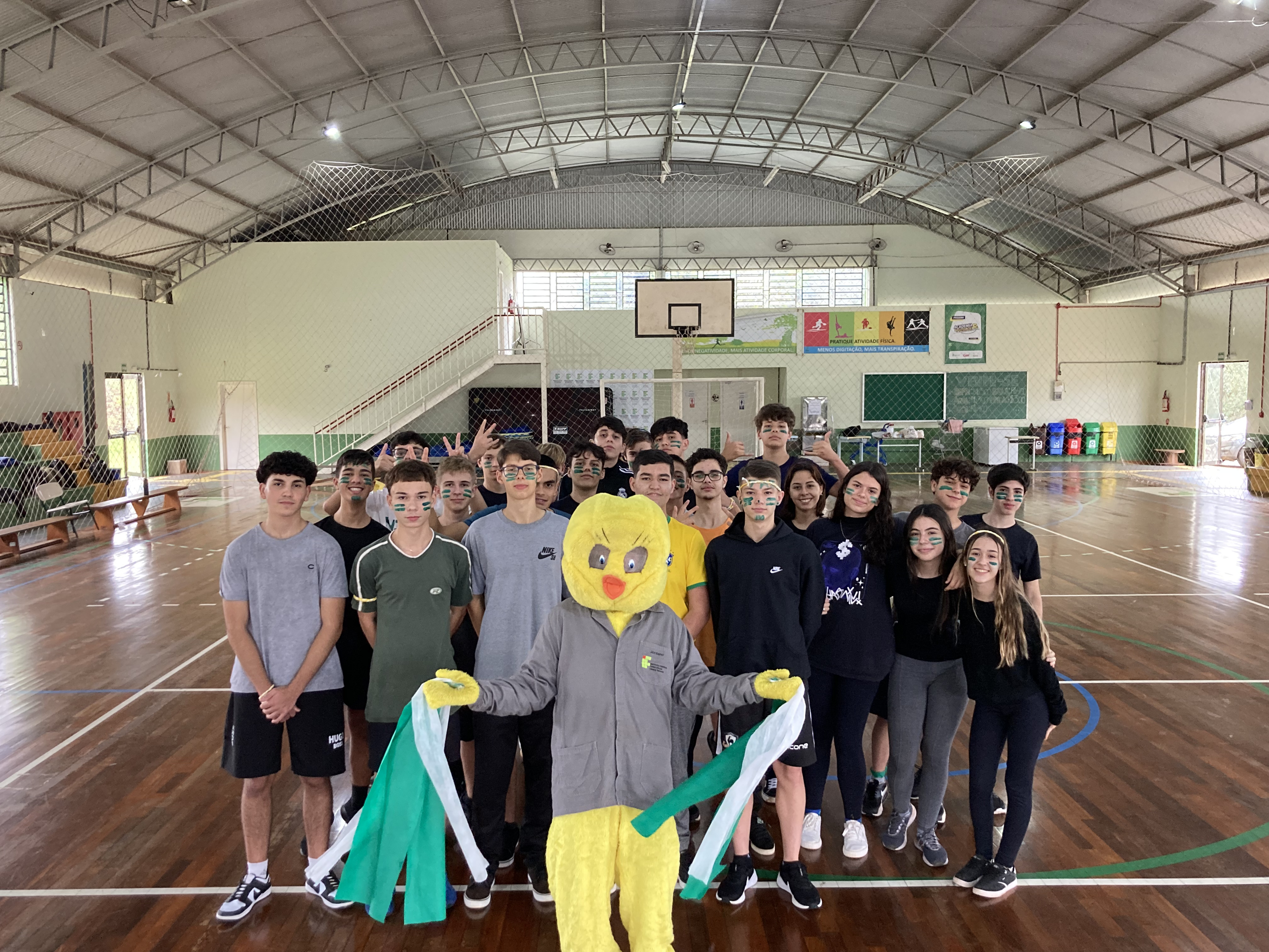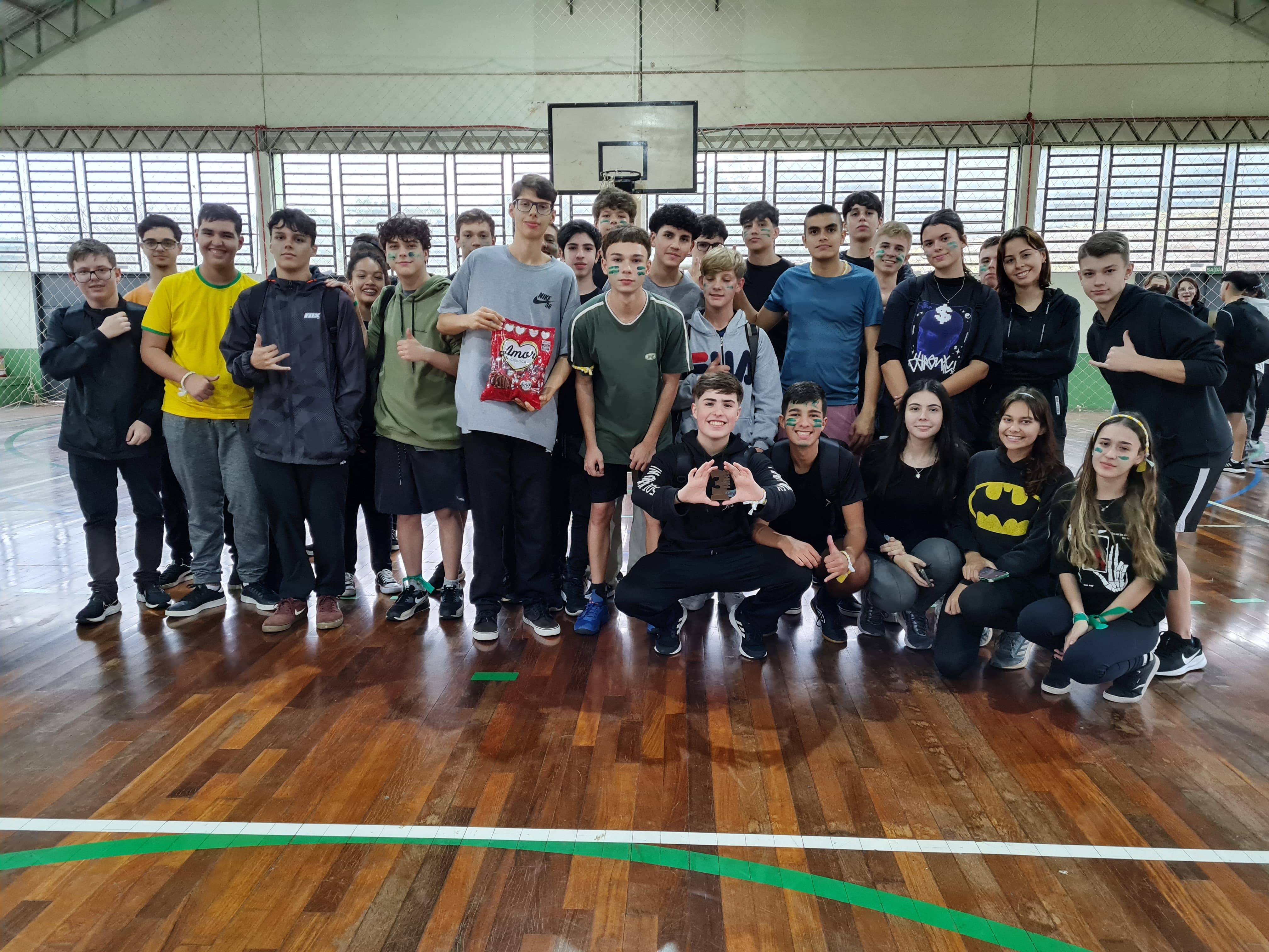 Os alunos entraram em uma amistosa competição pelo 1° lugar, onde houve a avaliação da caracterização da equipe, mascote, grito de guerra e brincadeiras.