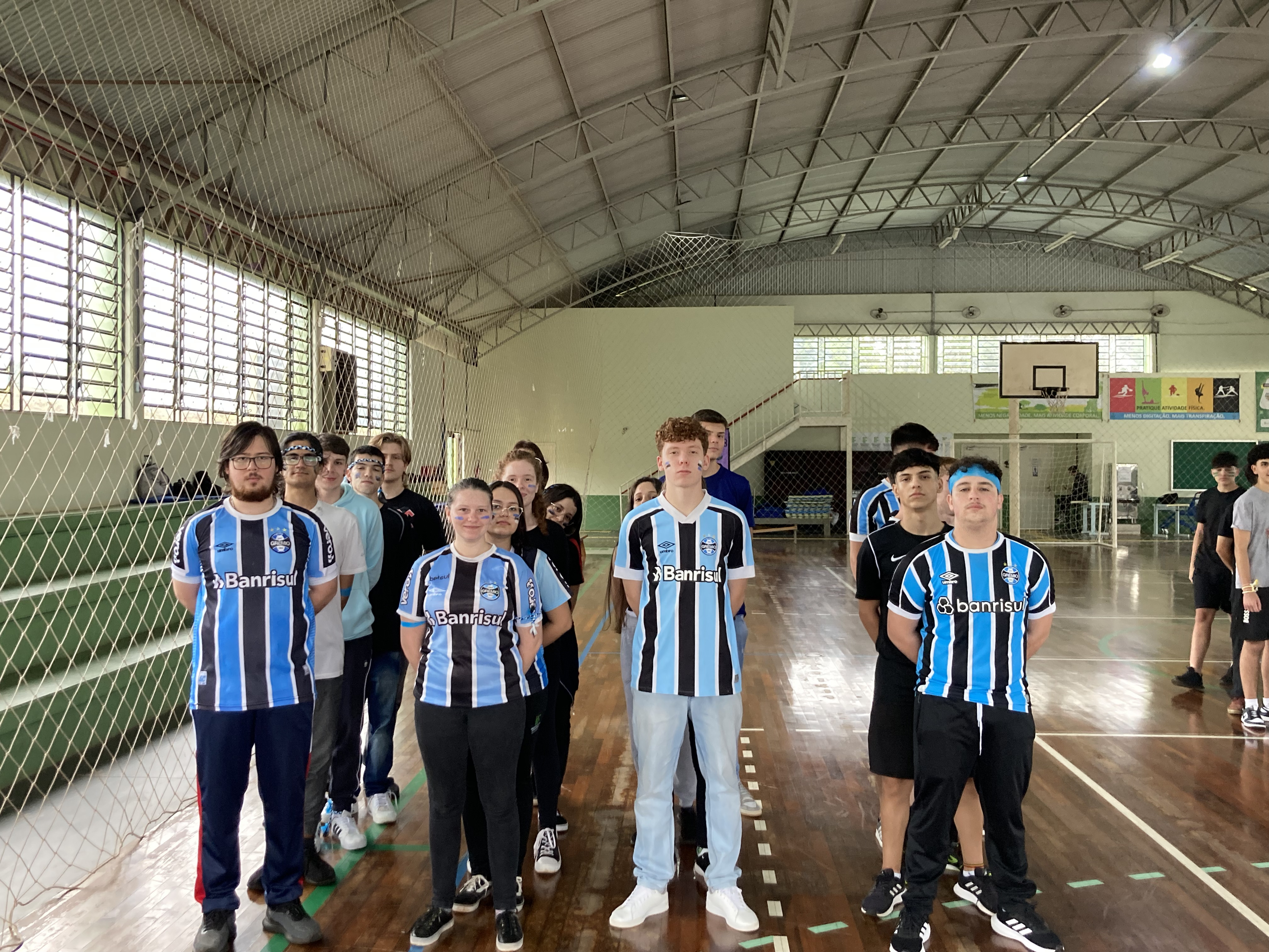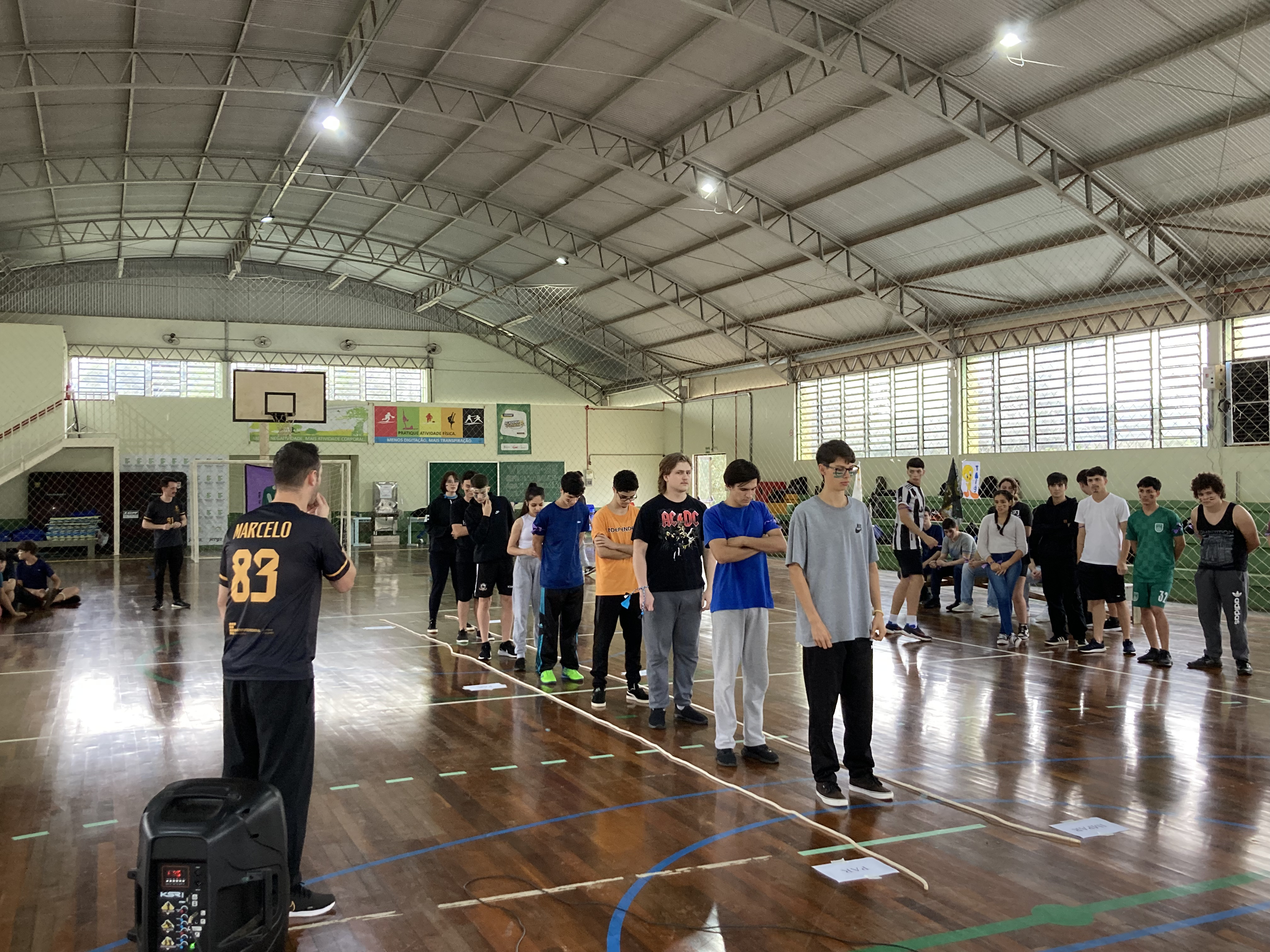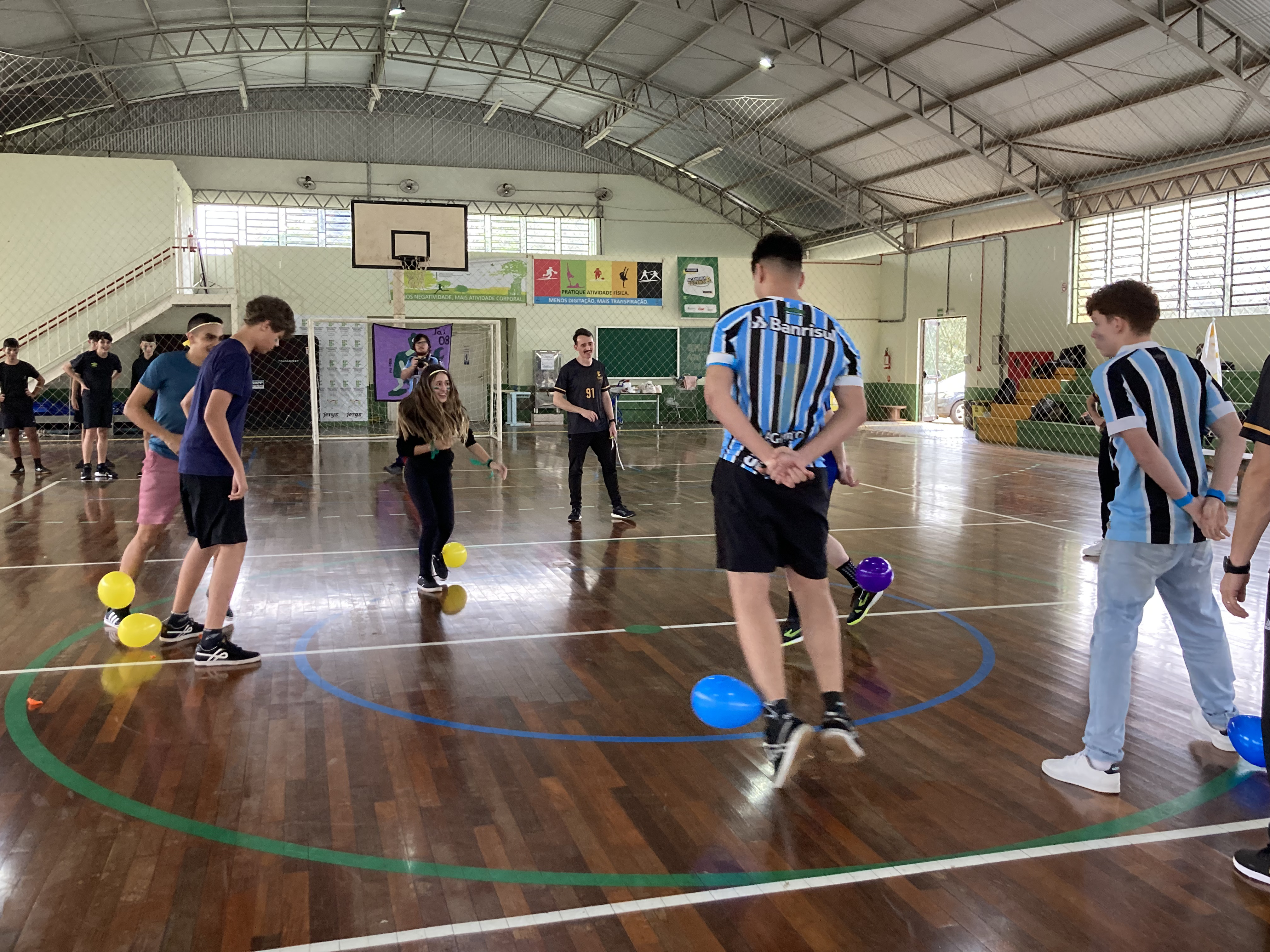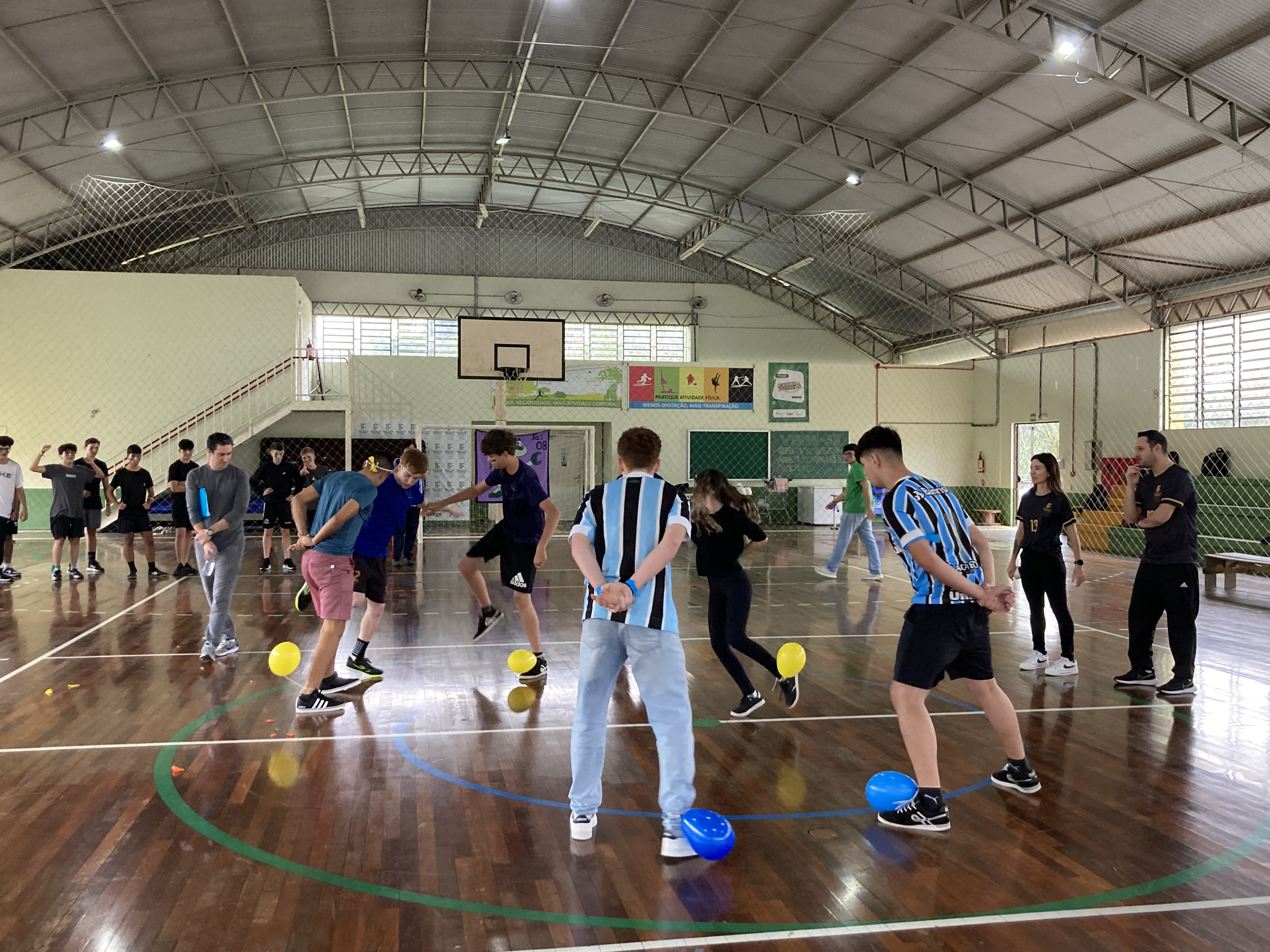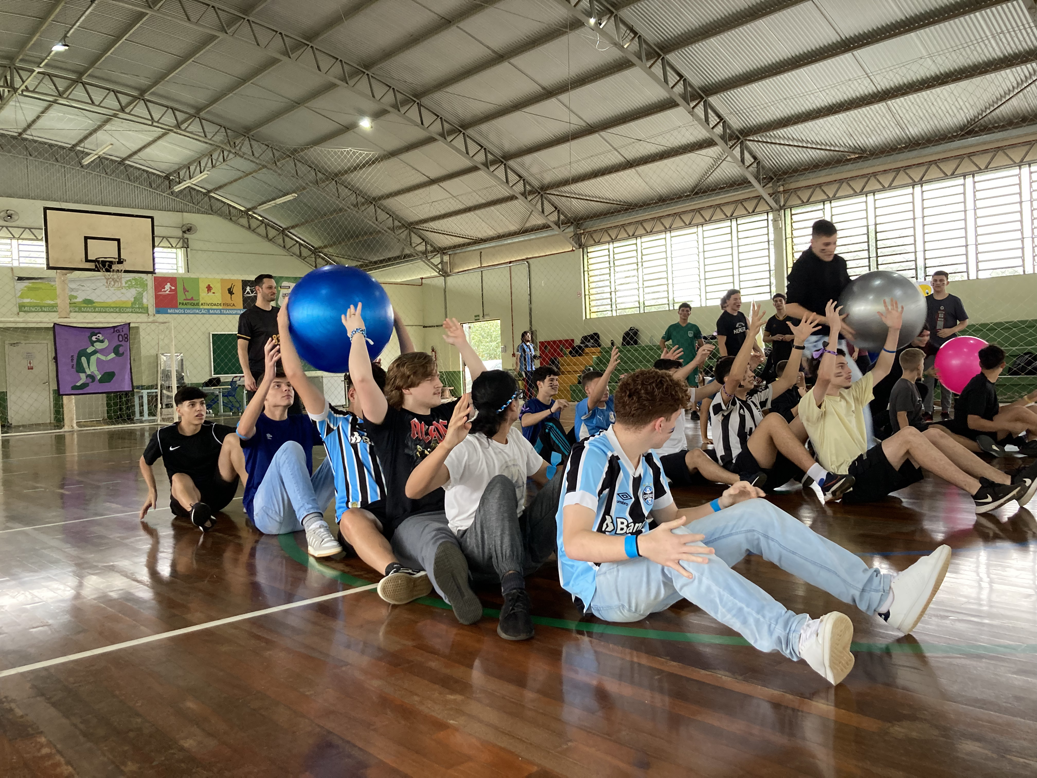Os alunos entraram em uma amistosa competição pelo 1° lugar, onde houve a avaliação da caracterização da equipe, mascote, grito de guerra e brincadeiras.