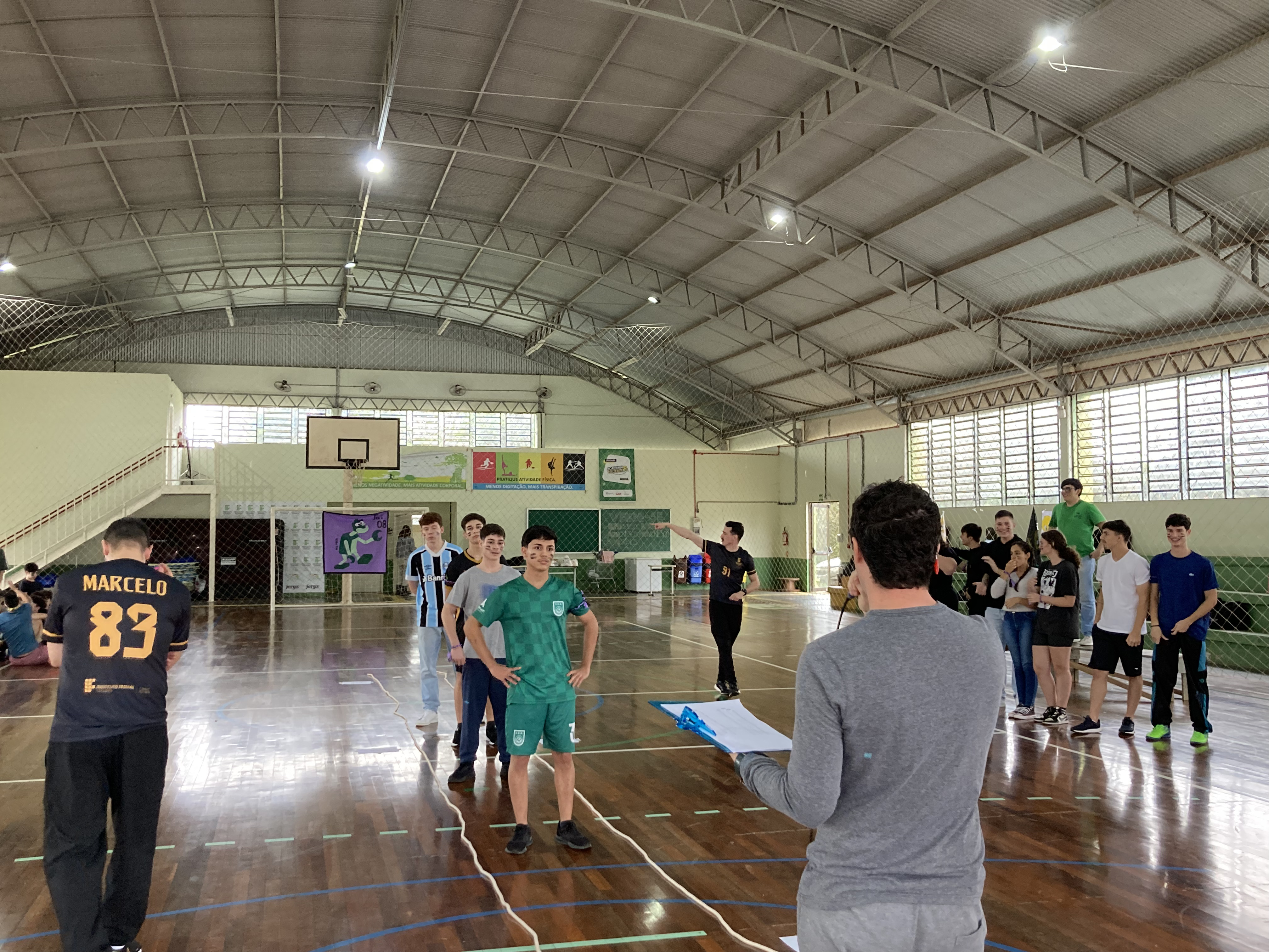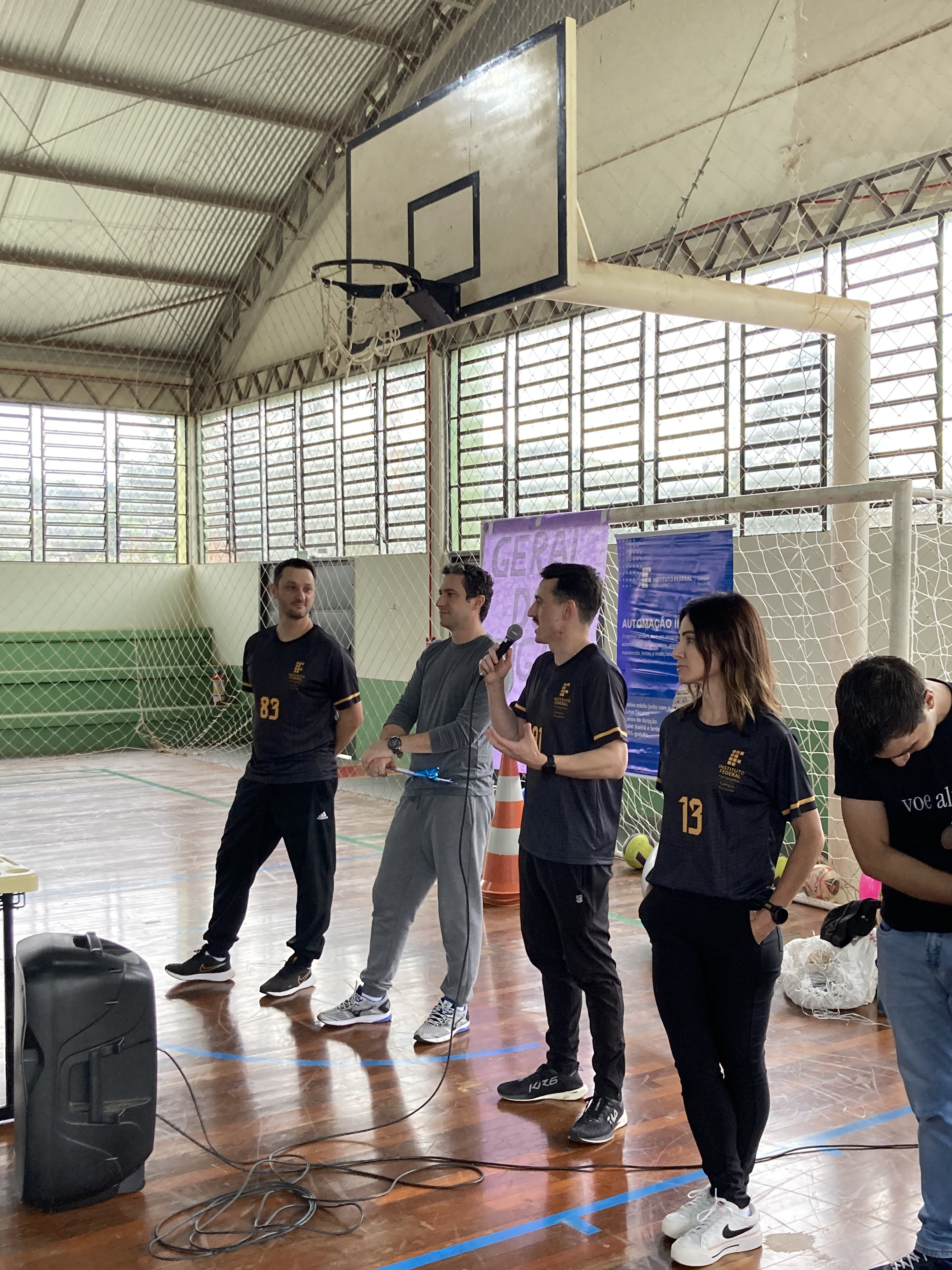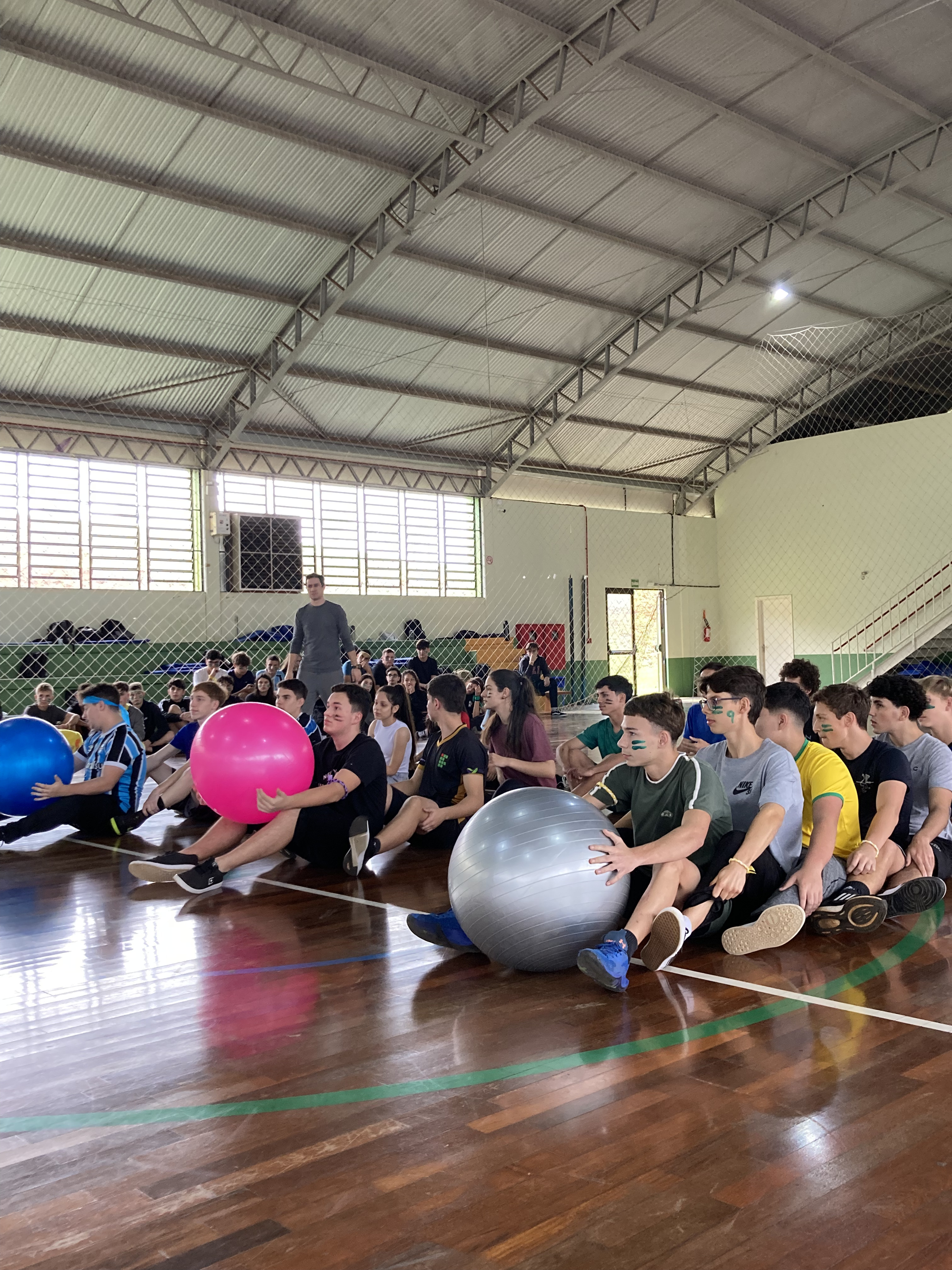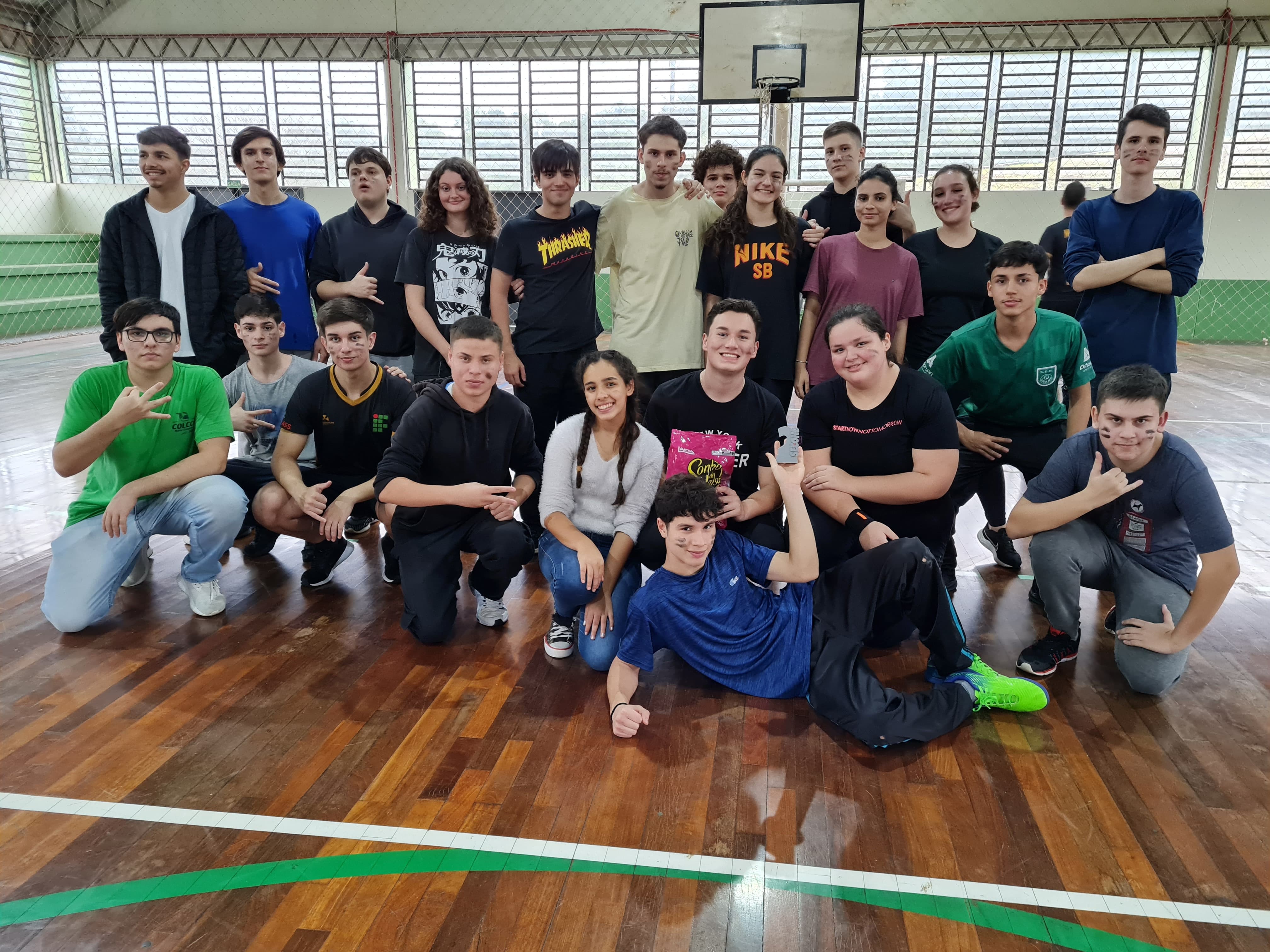 Os alunos entraram em uma amistosa competição pelo 1° lugar, onde houve a avaliação da caracterização da equipe, mascote, grito de guerra e brincadeiras.