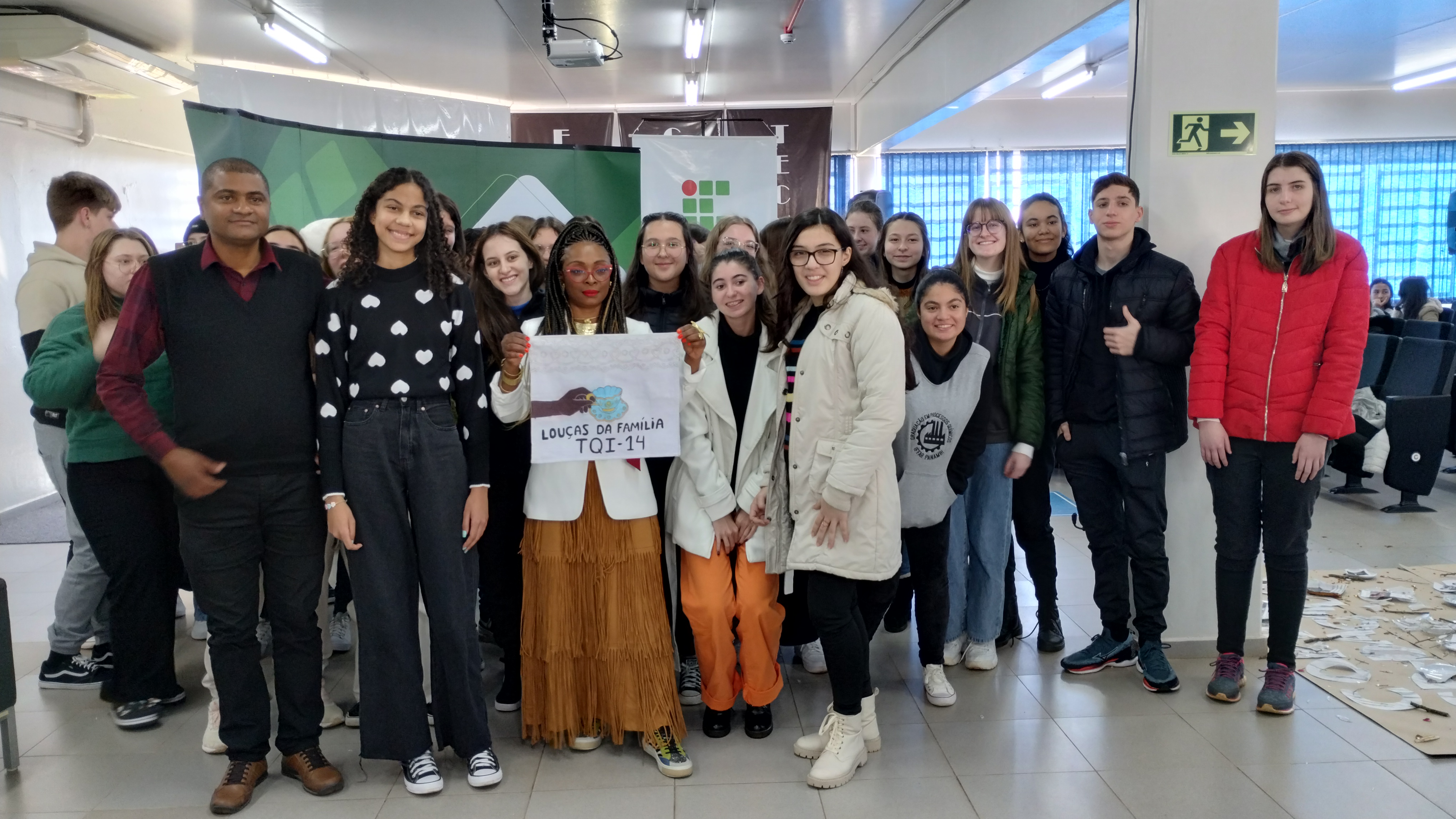 O evento foi organizado pelos integrantes do projeto “Literaturas pelo Mundo” e contou com o apoio do Núcleo de Arte e Cultura (NAC), Núcleo de Estudos Afrobrasileiros e Indígenas (NEABI) e Núcleo de Gênero e Diversidade Sexual (NUGEDIS) do IFFar – Campus Panambi. Diferentes expressões artístico-culturais ambientaram os espaços do evento e interagiram com as falas da autora, tais como a declamação de poesia, a montagem de instalações e uma performance contendo música, vídeo e poesia, envolvendo e emocionando aos mais de 400 participantes que prestigiaram o evento.