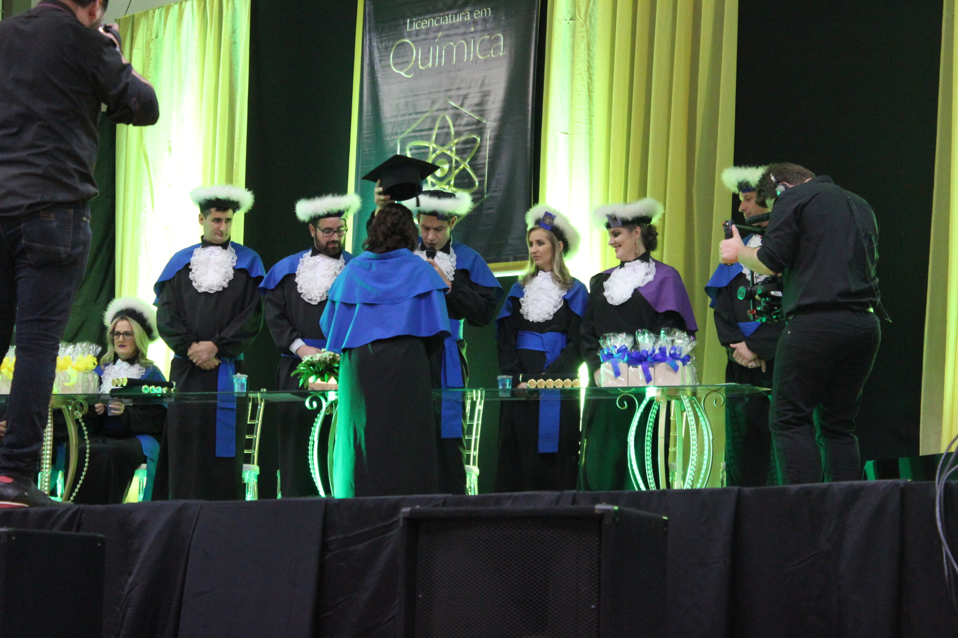 Na noite de sexta-feira, 10/03, a comunidade acadêmica do Instituto Federal Farroupilha – Campus Panambi esteve em festa. Realizou-se, na Associação dos Funcionários da Cotripal (Afucopal), a solenidade de outorga de grau a oito alunos do curso de Licenciatura em Química e oito alunos do curso de Tecnologia em Sistemas para Internet. Nos discursos de paraninfos e autoridades do IFFar foram destacados o compromisso da instituição com a formação de profissionais qualificados a desenvolver suas profissões tanto na parte técnica, quanto no aspecto humano. A formatura sinalizou o começo de uma jornada de desafios e novas expectativas para mais um grupo de profissionais que levarão o nome da instituição para os diferentes locais e contextos nos quais atuarão.