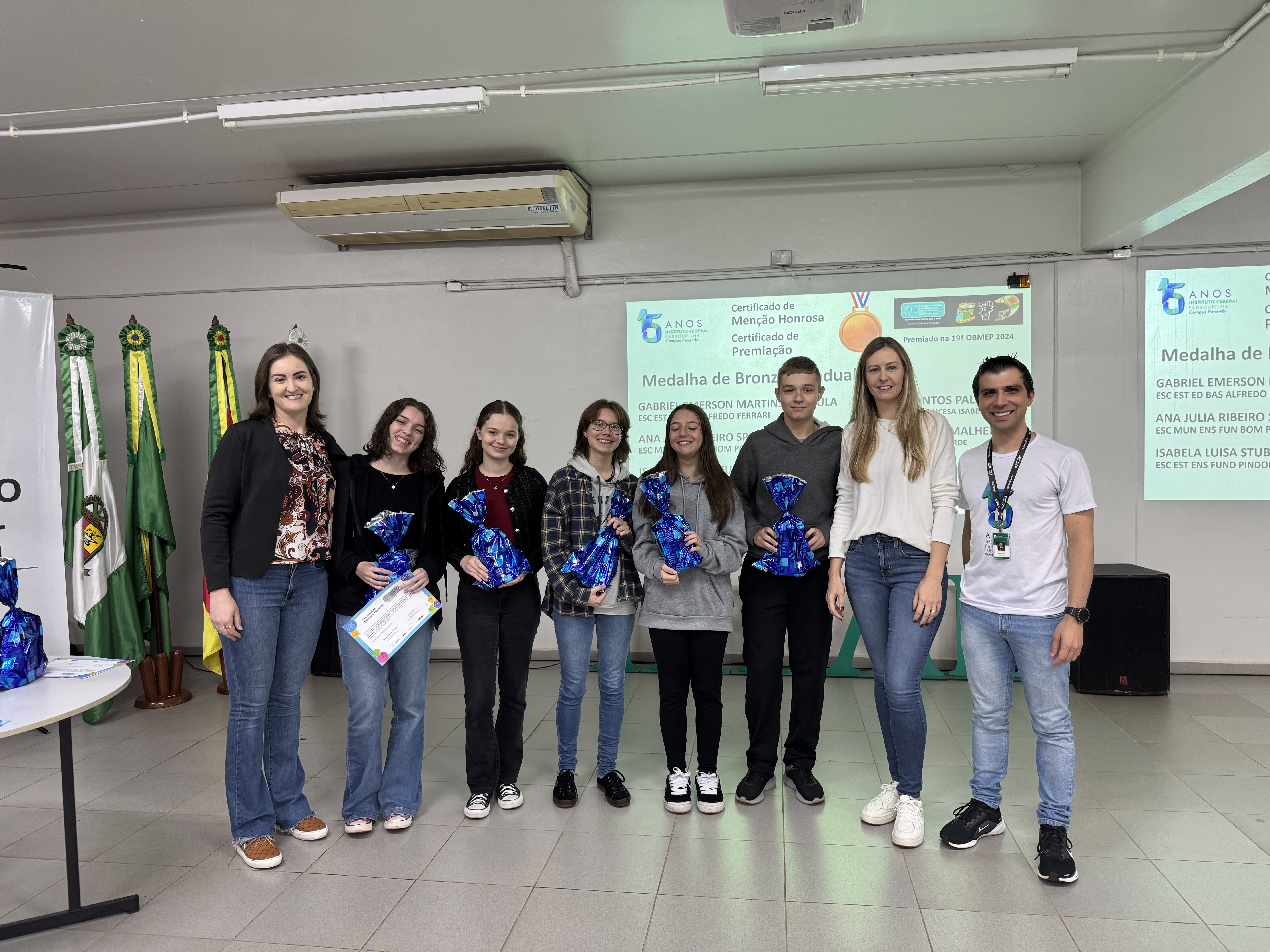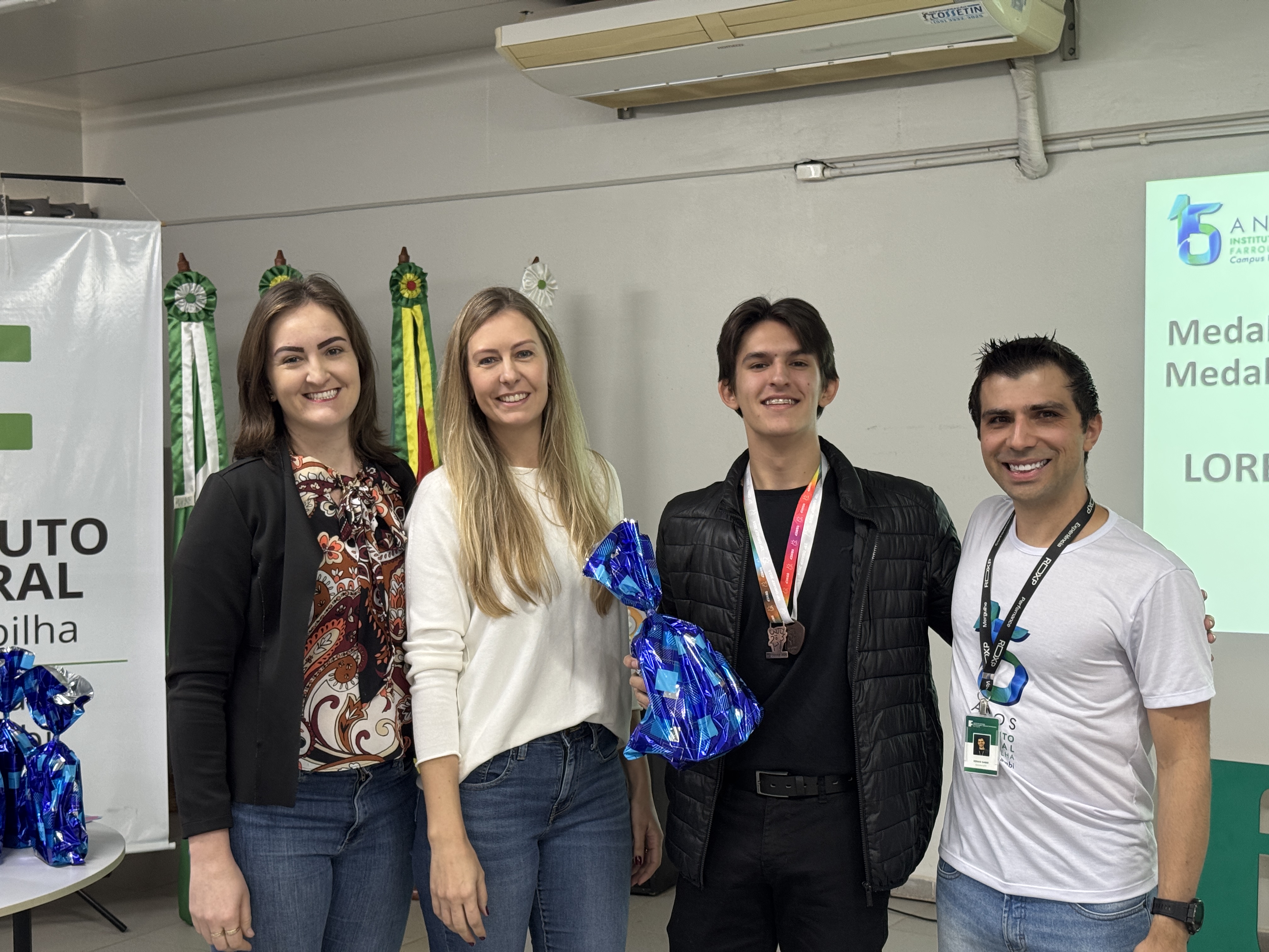 Também foram homenageados alunos que atualmente estudam no IFFar, mas foram premiados pela participação enquanto ainda estavam em outras escolas: