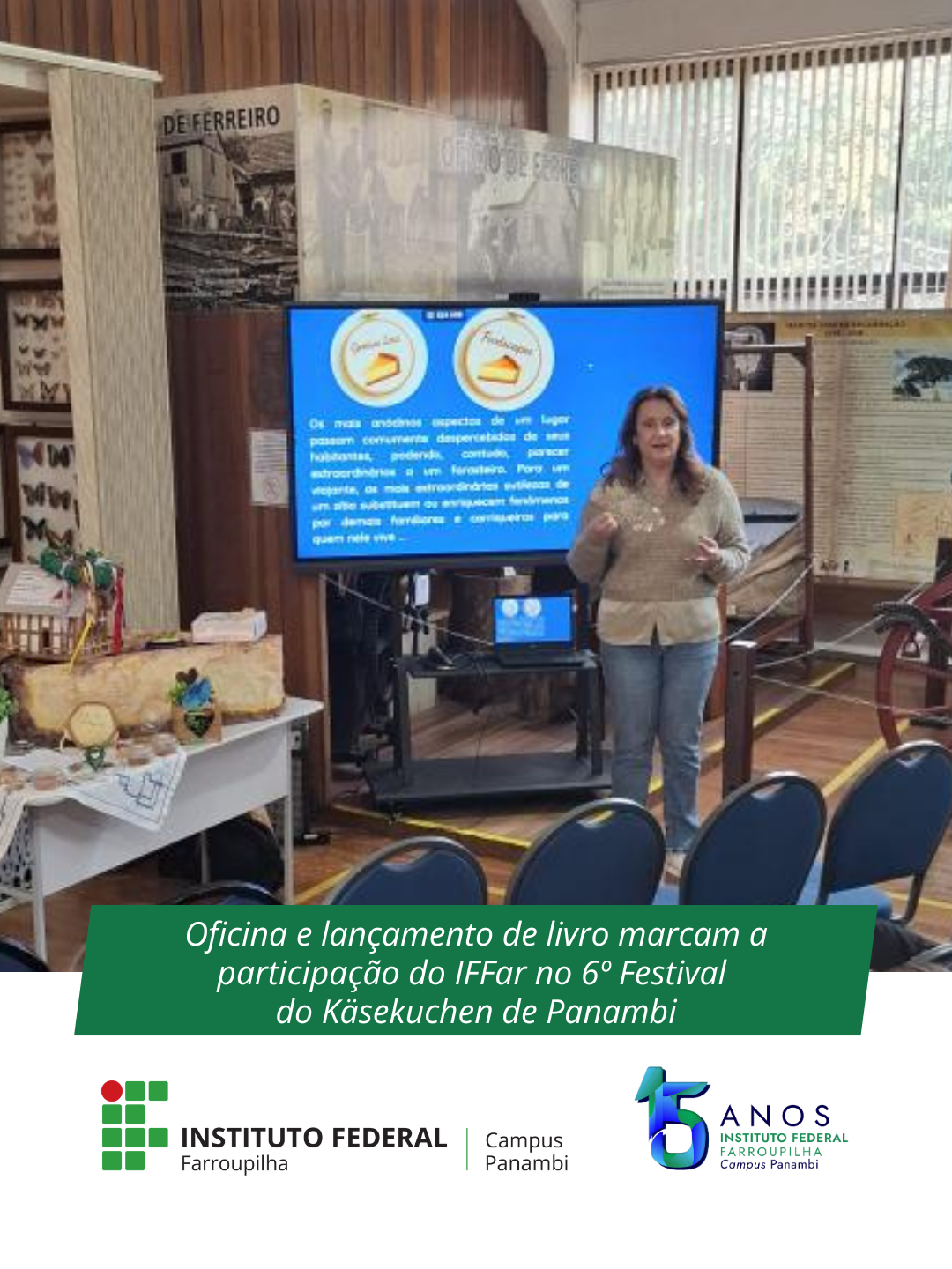 No sábado, 6 de julho, o IFFar – Campus Panambi marcou presença no Festival do Käsekuchen, realizado no Parque Municipal de Panambi, com duas importantes ações de extensão que valorizam a cultura local e os laços com a tradição alemã.