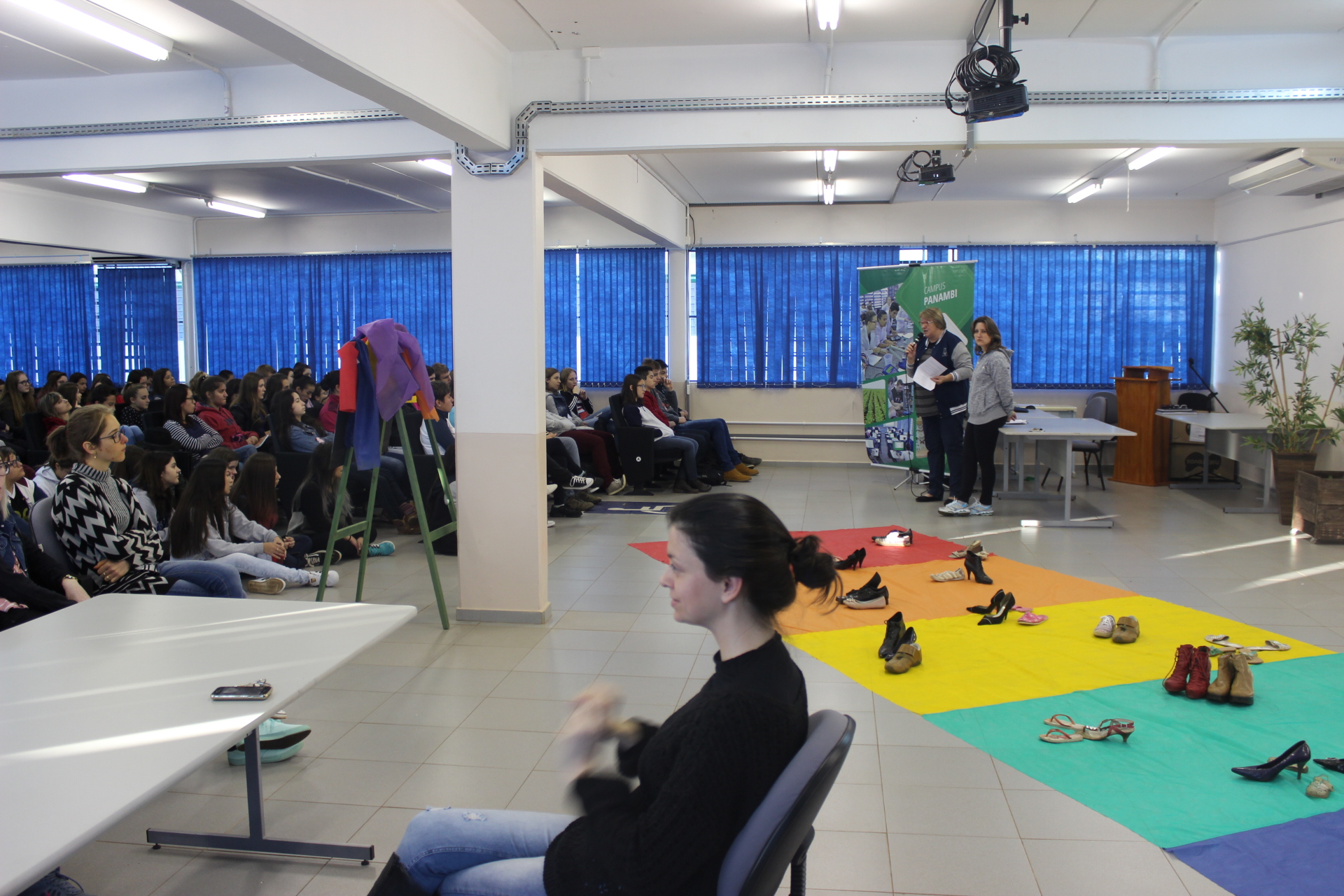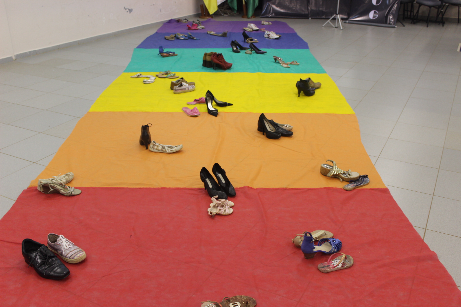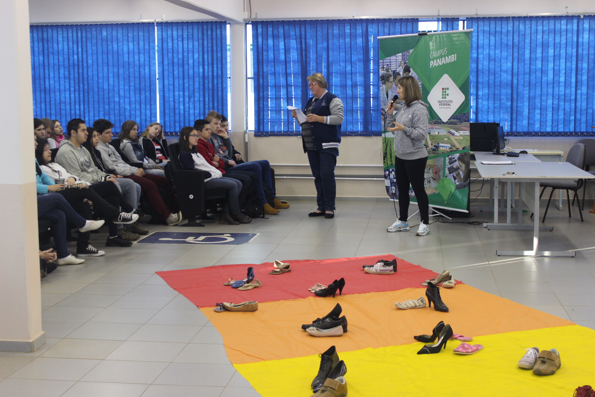 Após a explanação inicial, todos os presentes foram convidados a refletir sobre uma instalação com calçados, organizada sobre a bandeira do arco-íris. Nela estavam dispostos pares de sapatos diferentes, unindo pés masculinos e femininos, somente pés femininos, etc., possibilitando a reflexão sobre os diversos tipos de união entre seres humanos. Após a atividade, a bandeira ficou exposta no hall de entrada do campus e os calçados – arrecadados em campanha prévia – serão destinados a uma instituição do município.