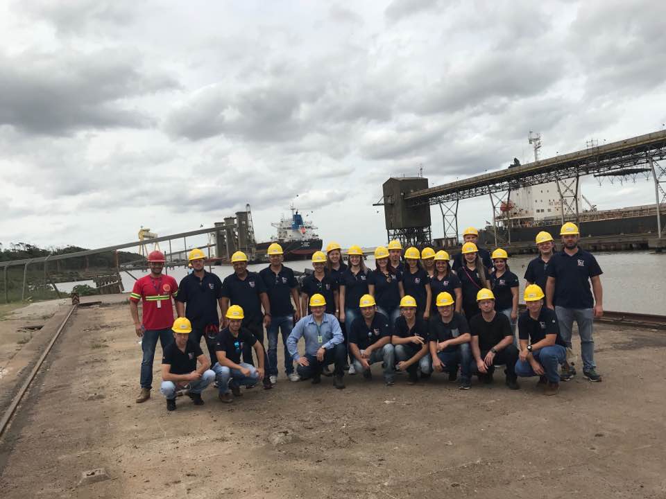 Na sequência o grupo visitou as dependências dos terminais graneleiros Termasa/Tergrasa, no Super Porto em Rio Grande. No local os alunos conheceram todo o processo de funcionamento da logística da soja que é escoada por este terminal, que atualmente é responsável por 75% da soja gaúcha que é exportada. O terminal é considerado referência nacional em organização de agendamento e descarga de grãos no país.