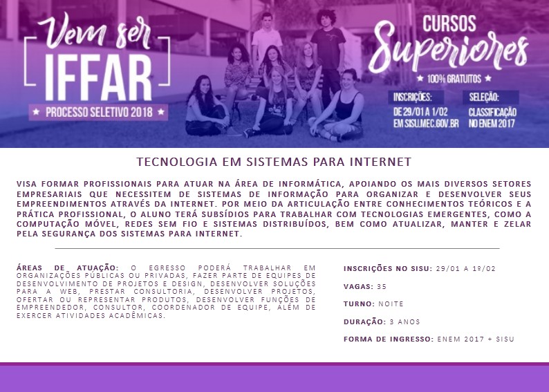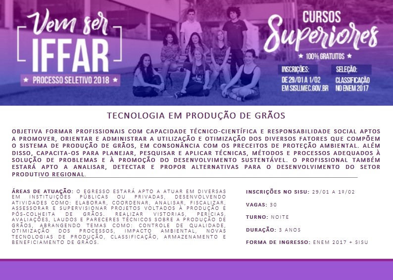 Confira informações adicionais sobre cada um dos cursos ofertados e os benefícios que o IFFar dispõe nas imagens anexas.