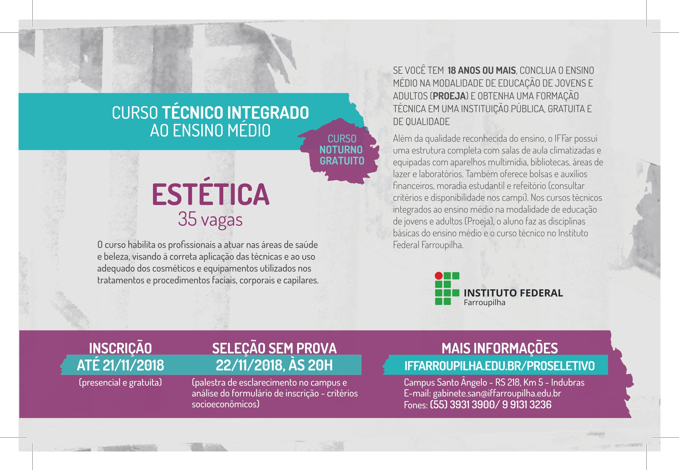 Lembramos que o IFFar Campus Santo Ângelo está de portas abertas! As inscrições e todos os nossos cursos são gratuitos!