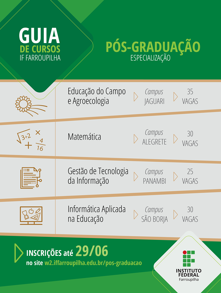 Instituto Federal Farroupilha divulga Cursos de Especialização a serem ofertados no Ano de 2016