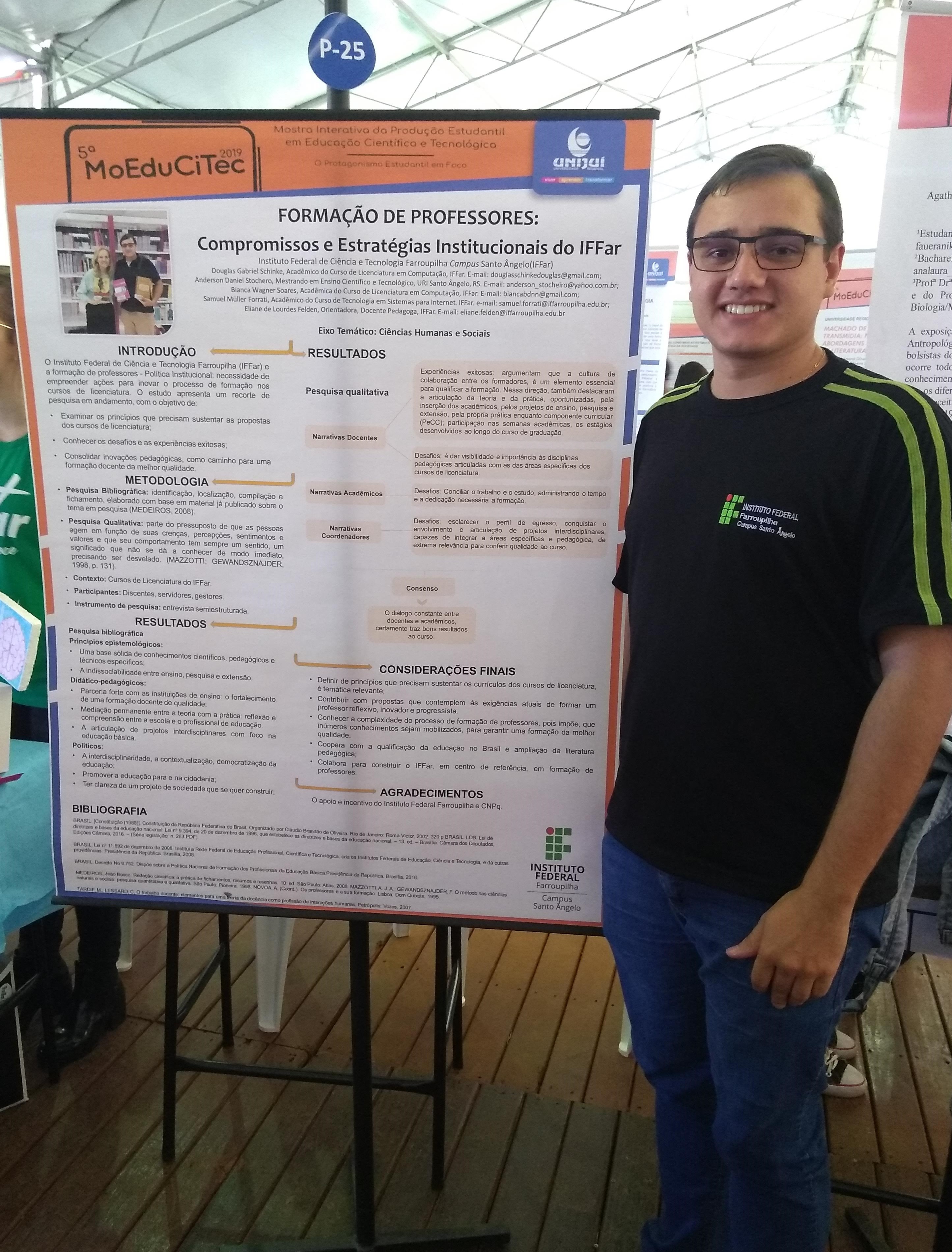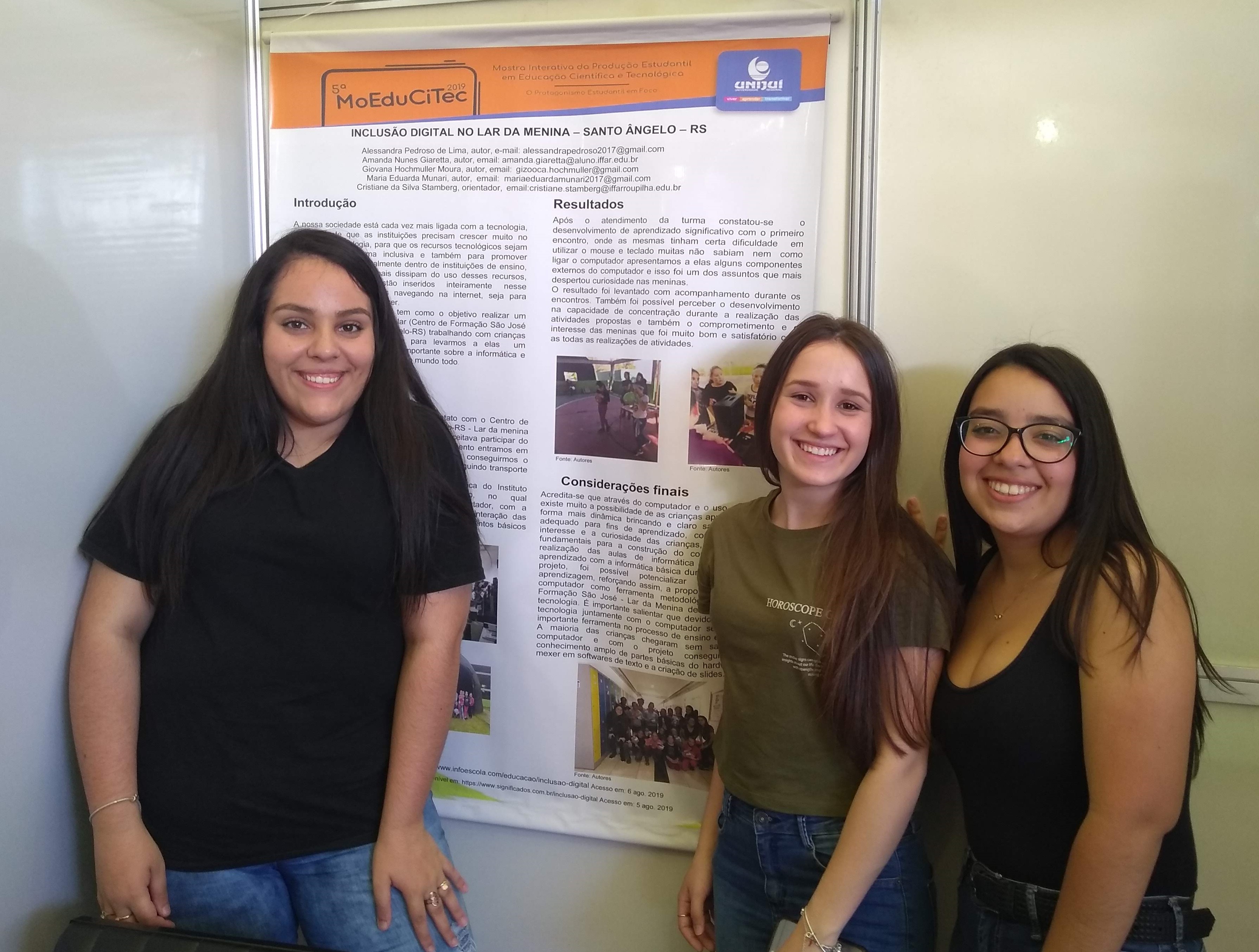 No dia 24 de outubro de 2019, os alunos do IFFar Campus Santo Ângelo participaram da 5ª Mostra Interativa da Produção Estudantil em Educação Científica e Tecnológica (MoEduCiTec), promovido pela Unijuí. Os estudantes apresentaram os resultados dos trabalhos desenvolvidos como ações de ensino, pesquisa ou extensão da instituição.
