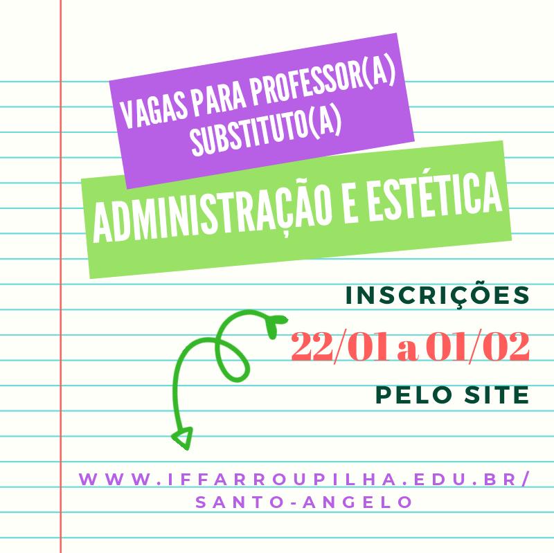Nos próximos dias teremos inscrições abertas das 2 vagas para Professor(a) Substituto(a) nas áreas de Administração e Estética.