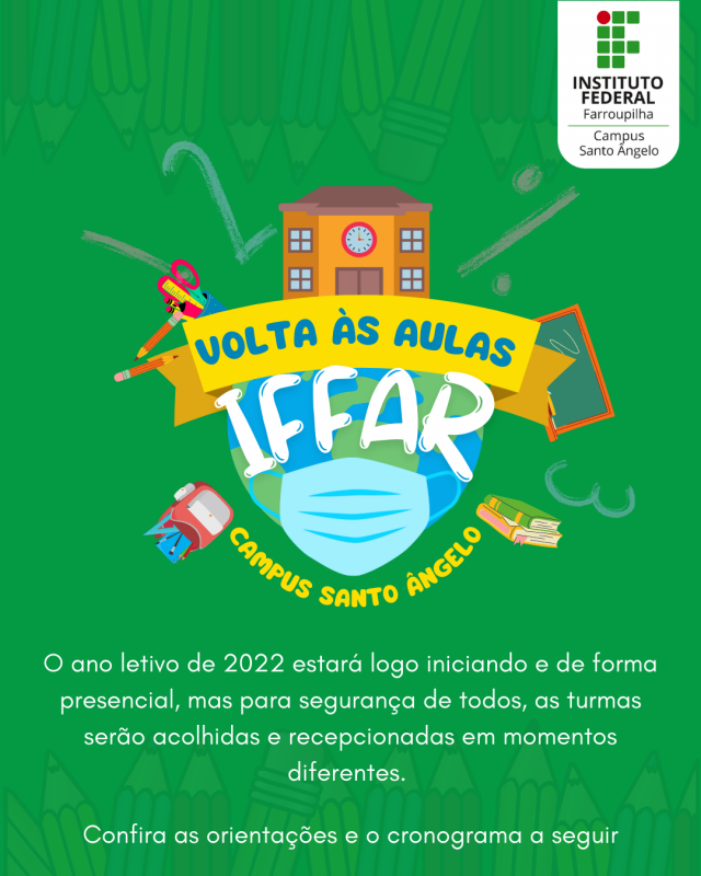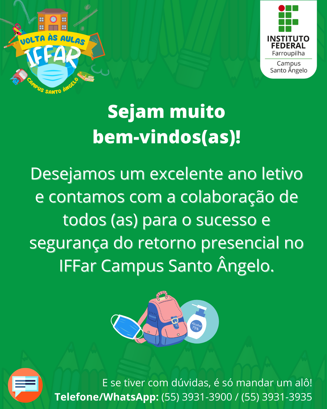 Desejamos um excelente ano letivo e contamos com a colaboração de todos(as) para o sucesso e segurança do retorno presencial no Campus Santo Ângelo. Bem vindos(as)!