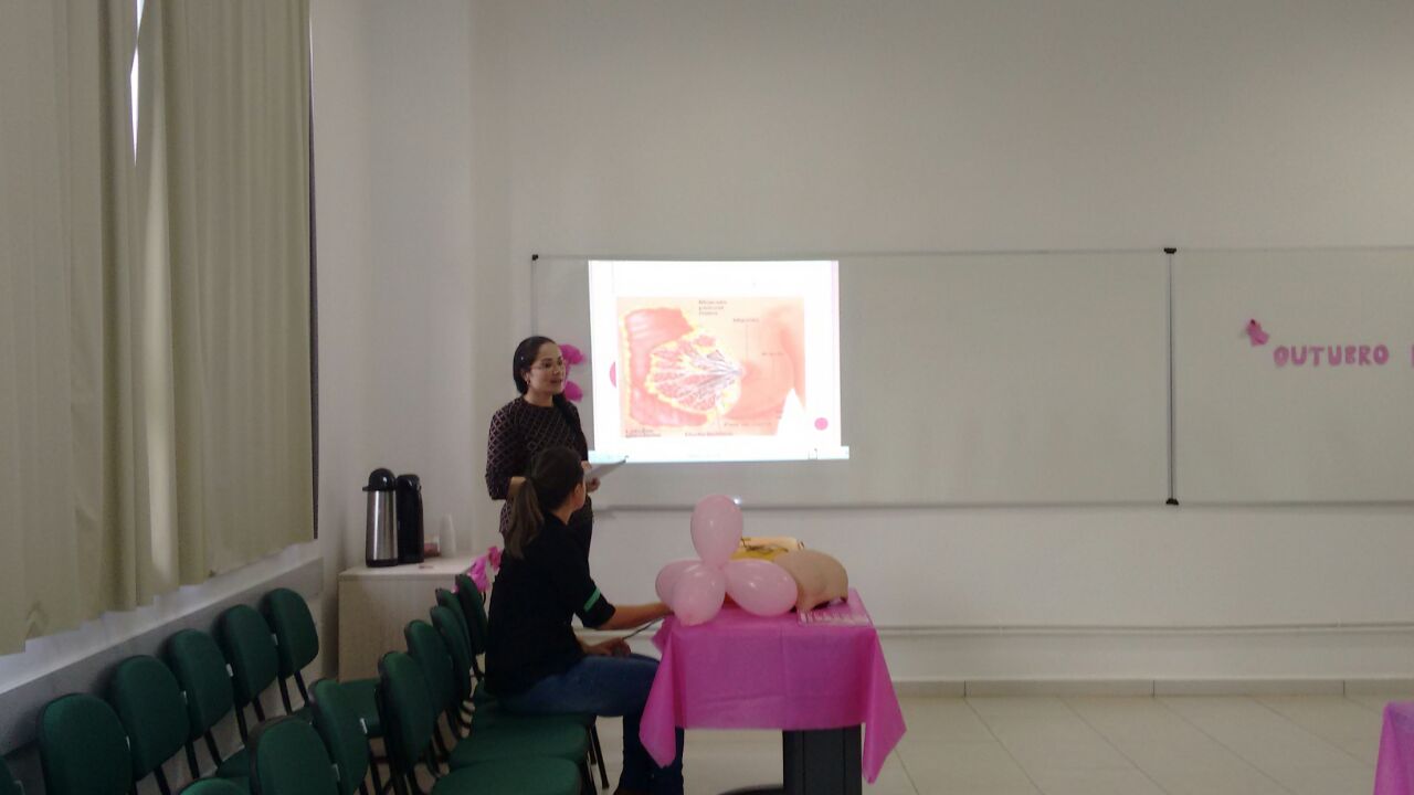 Outubro é o mês da Luta contra o Câncer de Mama, por este motivo a Coordenação da Assistência Estudantil realizou um momento de interação e reflexão sobre Saúde da Mulher com as servidoras do Campus Santo Ângelo. Foram retomados alguns cuidados como mamografia, autoexame de mamas e sinais e sintomas sugestivos de lesões cancerígenas. A atividade foi conduzida pela médica e pela enfermeira do Campus. Na próxima semana serão realizadas outras atividades referentes ao Outubro Rosa com os discentes.
