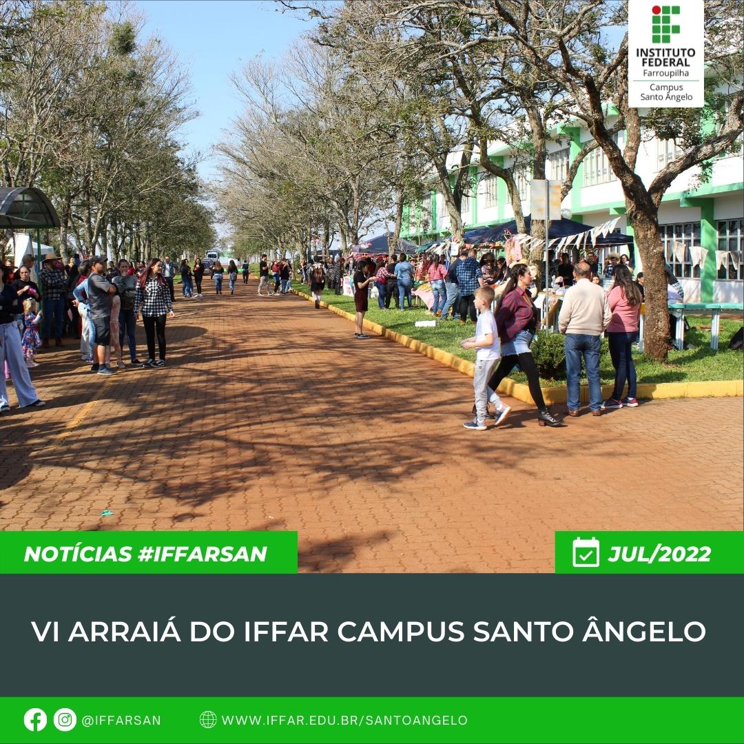 O Instituto Federal Farroupilha - Campus Santo Ângelo promoveu através da Comissão Organizadora da Festa Junina e Núcleo de Arte e Cultura o VI Arraiá do IFFar que contou com expressiva participação de estudantes, servidores e comunidade externa.