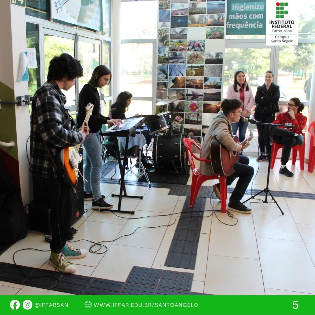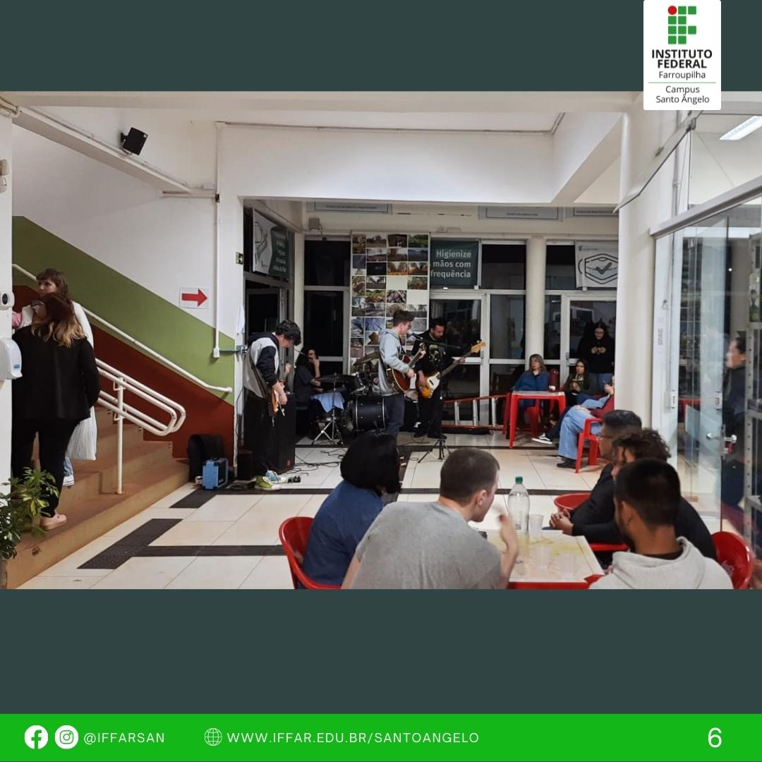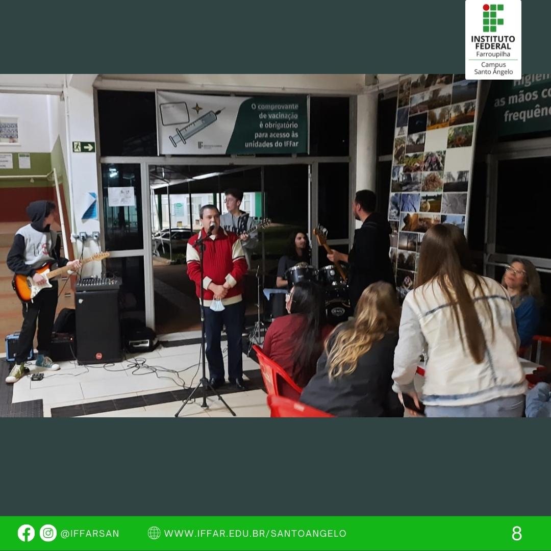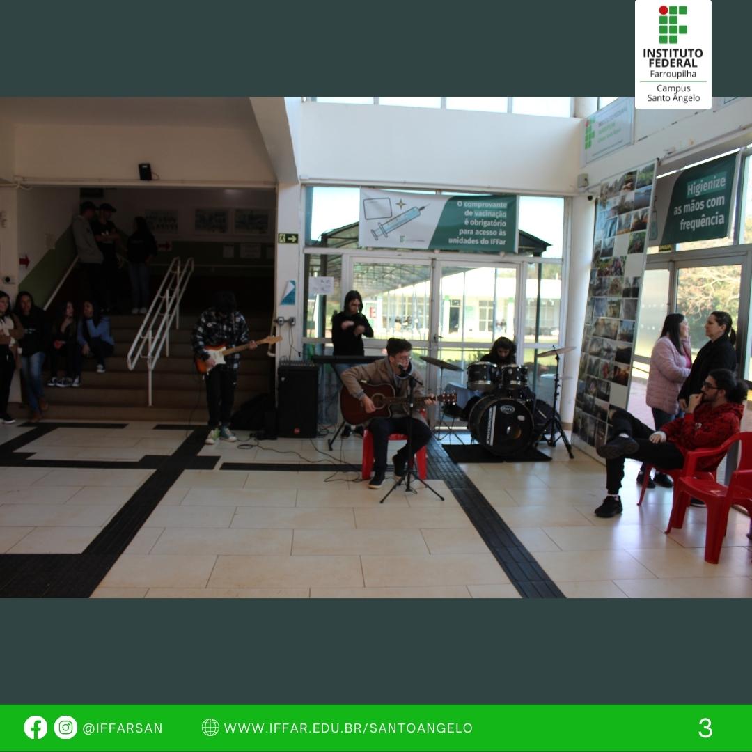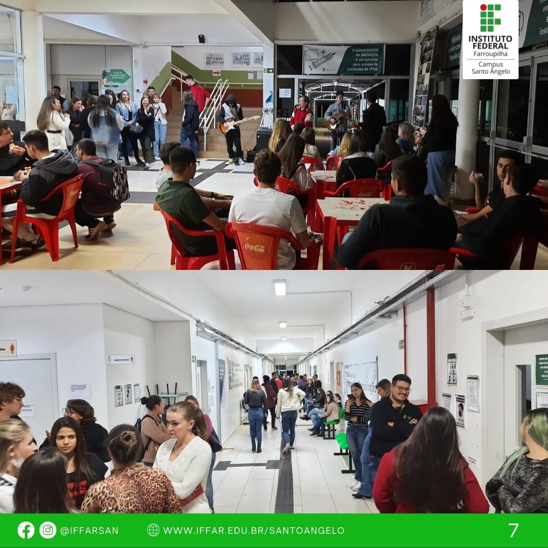 No intervalo da manhã e da noite de segunda-feira (01 de agosto) os estudantes do Instituto Federal Farroupilha campus Santo Ângelo foram acolhidos pelo Diretor Geral Adilson Ribeiro Paz Stamberg e pela Diretora de Ensino Mariéli Krampe Machado, que desejaram as boas vindas e um excelente semestre a todos. A programação contou também com uma animada apresentação de algumas músicas de estudantes que participam do projeto de extensão Ondas ano 3. Tal apresentação promoveu um momento de descontração e integração no campus.