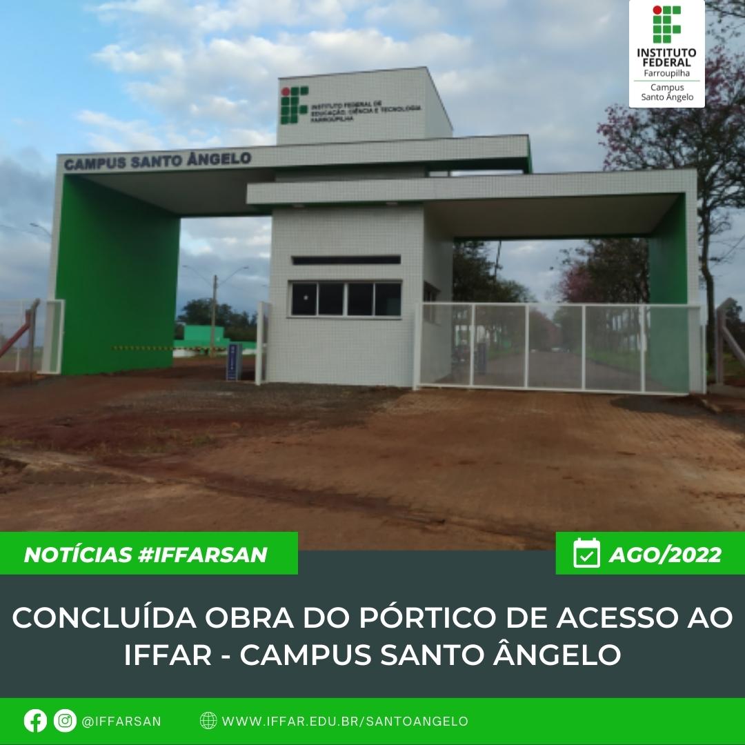 No mês de julho de 2022, foi concluída e entregue à Comunidade Acadêmica do IFFar - Campus Santo Ângelo a obra de construção do Pórtico de Acesso ao Campus.