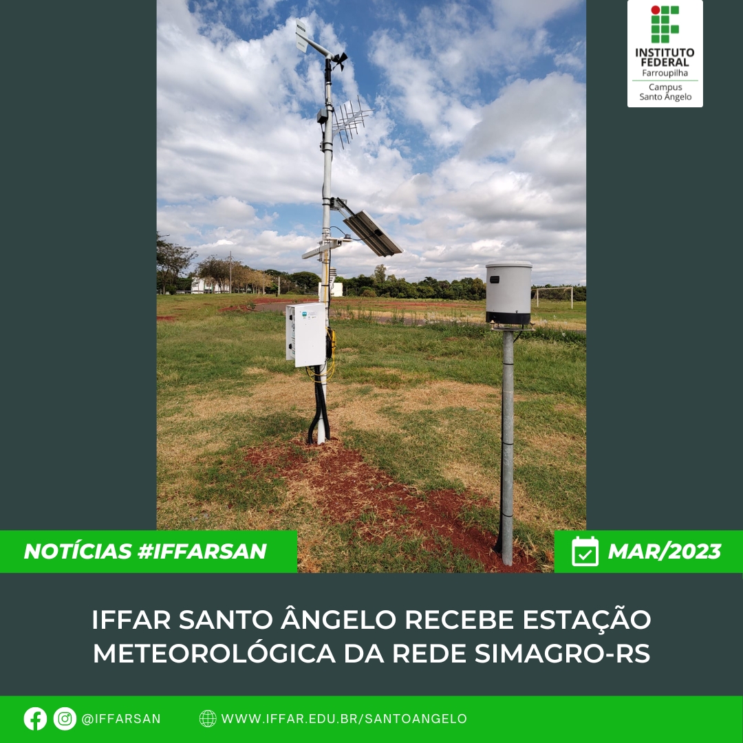 No mês de janeiro de 2023 o IFFar Campus Santo Ângelo recebeu uma Estação Meteorológica do Sistema de Monitoramento e Alertas Agroclimáticos (Simagro-RS).Essa estação meteorológica é uma estação muito precisa, coletando, armazenando e enviando dados meteorológicos de Chuva, Radiação Solar, Temperatura do Ar, Umidade Relativa do Ar, Pressão Atmosférica, Velocidade e Direção do Vento.