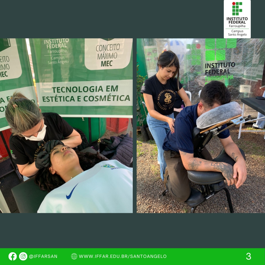 - Tenda inflável, ações de recepção ao público e divulgação dos cursos do Campus, além de oficinas de quick massagem, design de sobrancelha, avaliação capilar e facial, aferição de pressão arterial, entre outras atividades;