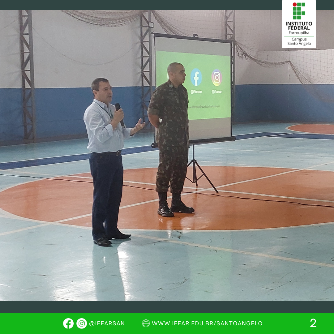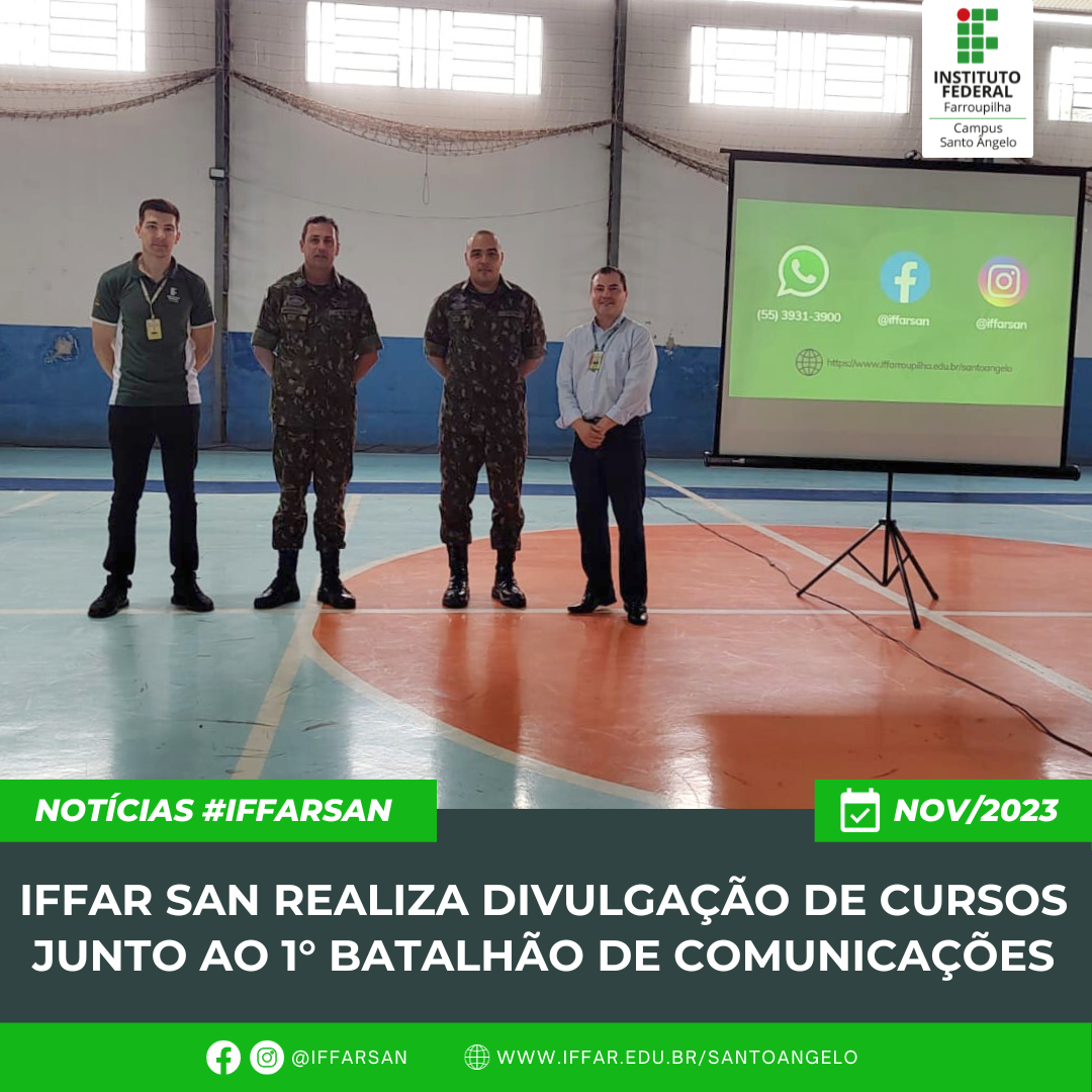 O IFFar foi recebido pelo Comandante do 1º BCom Coronel Japhet e pelo o 1º Sargento Makewitz, sendo acompanhado até o Ginásio de Esportes onde foi realizada a apresentação do Campus aos soldados e cabos do batalhão, com explanação dos cursos de graduação ofertados com processo seletivo aberto: