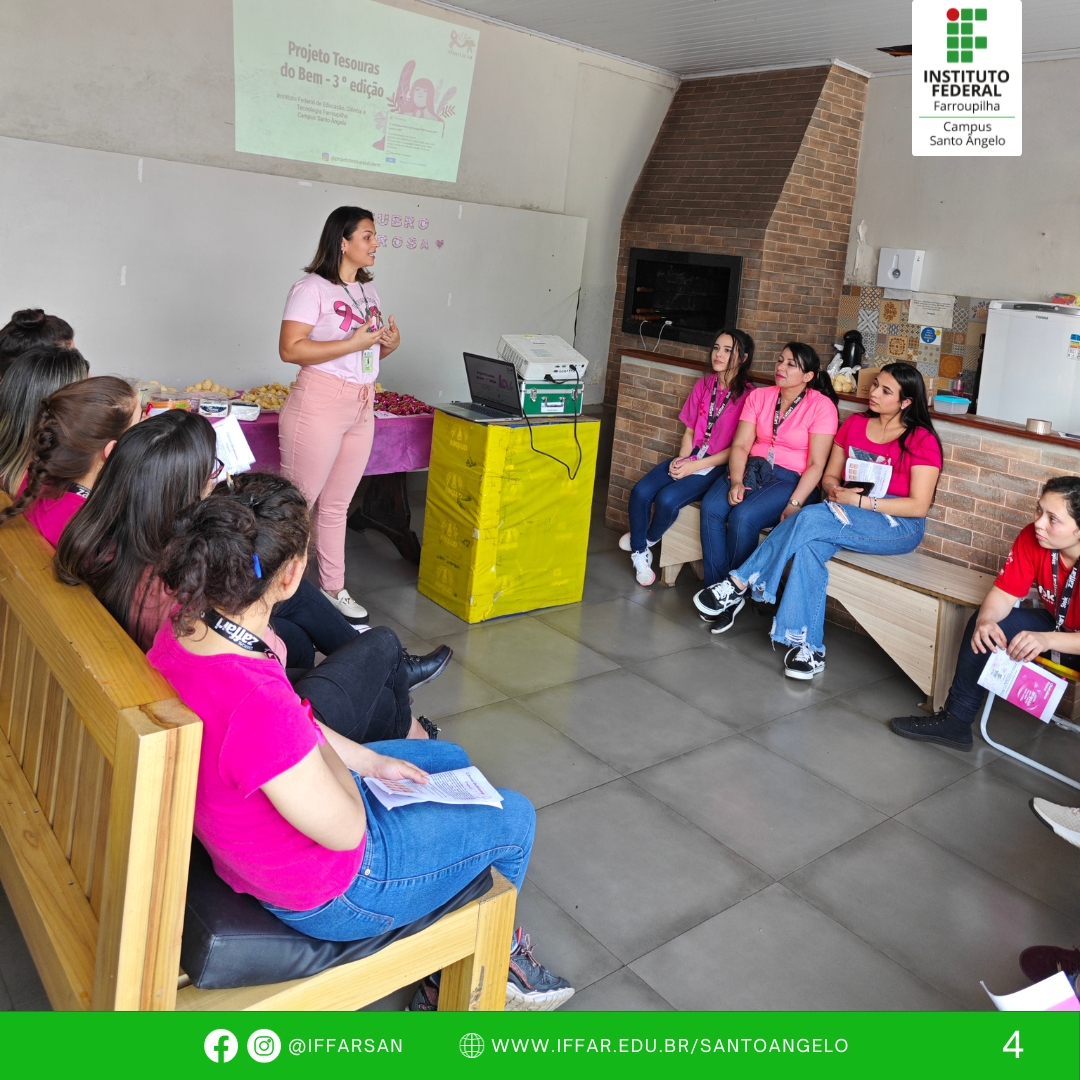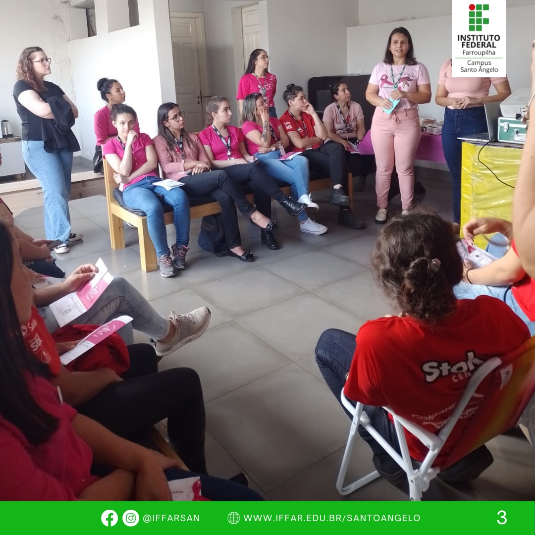 Na ocasião, a professora Andressa abordou as questões que envolvem o câncer de mama e de útero, a prevenção e a importância das mulheres conhecerem o próprio corpo e, assim, identificarem possíveis alterações.