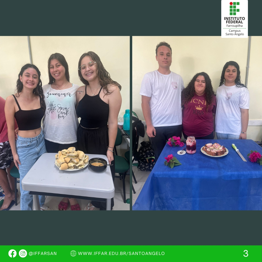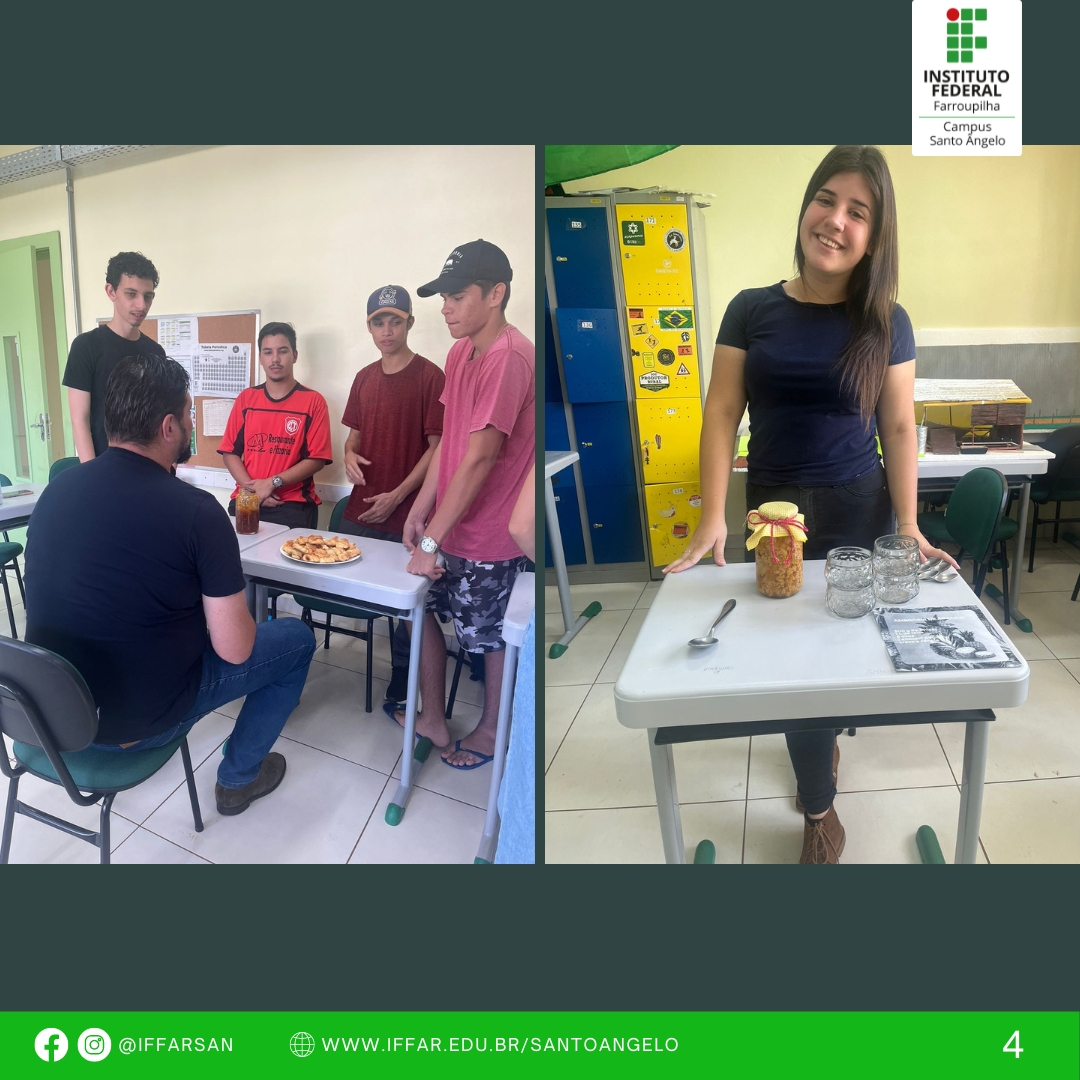 No dia 30 de novembro, a turma do terceiro ano do Curso Técnico Integrado em Agricultura, sob orientação da professora Ana Carolina Fluck, realizou uma atividade da disciplina de Processamento de Alimentos, a qual deveriam desenvolver algum produto com base nos aprendizados nas aulas práticas.