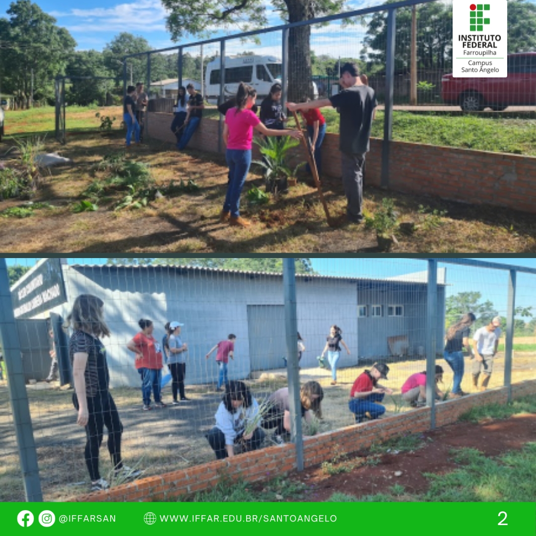 Para realizar a integração dos espaços construtivos com a natureza e transformá-los para a vivência e convivência, no dia 05 de dezembro do corrente ano, os estudantes do 1º ano do curso Técnico em Agricultura do IFFar - Campus Santo Ângelo, estiveram no Núcleo Comunitário Bairro Garibaldi Carrera Machado (Indubras), para aplicar conceitos e técnicas do paisagismo.