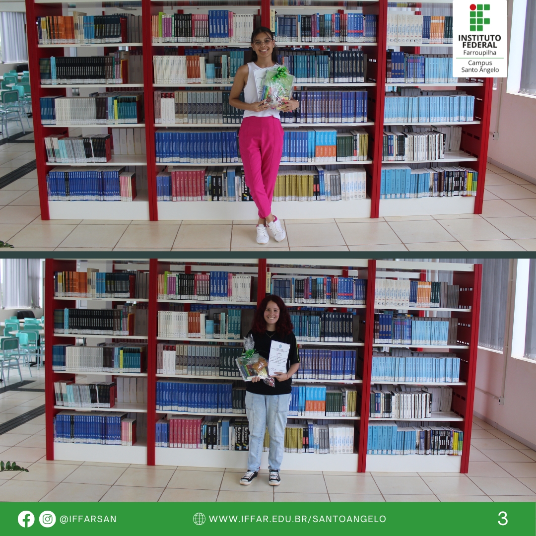 A Biblioteca Érico Veríssimo do Campus Santo Ângelo iniciou a ano letivo de 2024 com uma nova ação, nos dias 26 e 27/02 foram premiadas as duas alunas que mais retiram/leram livros durante o ano de 2023.