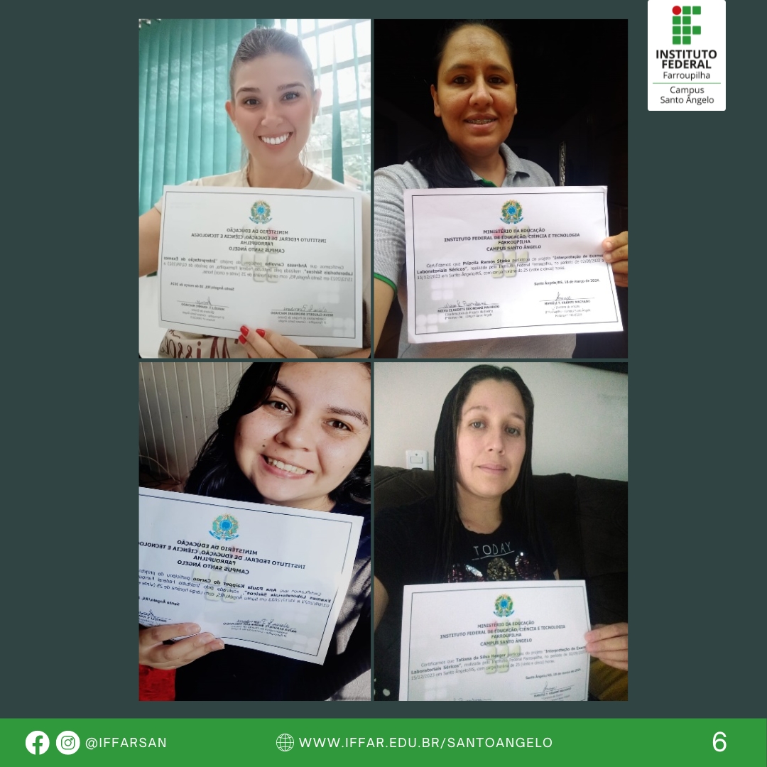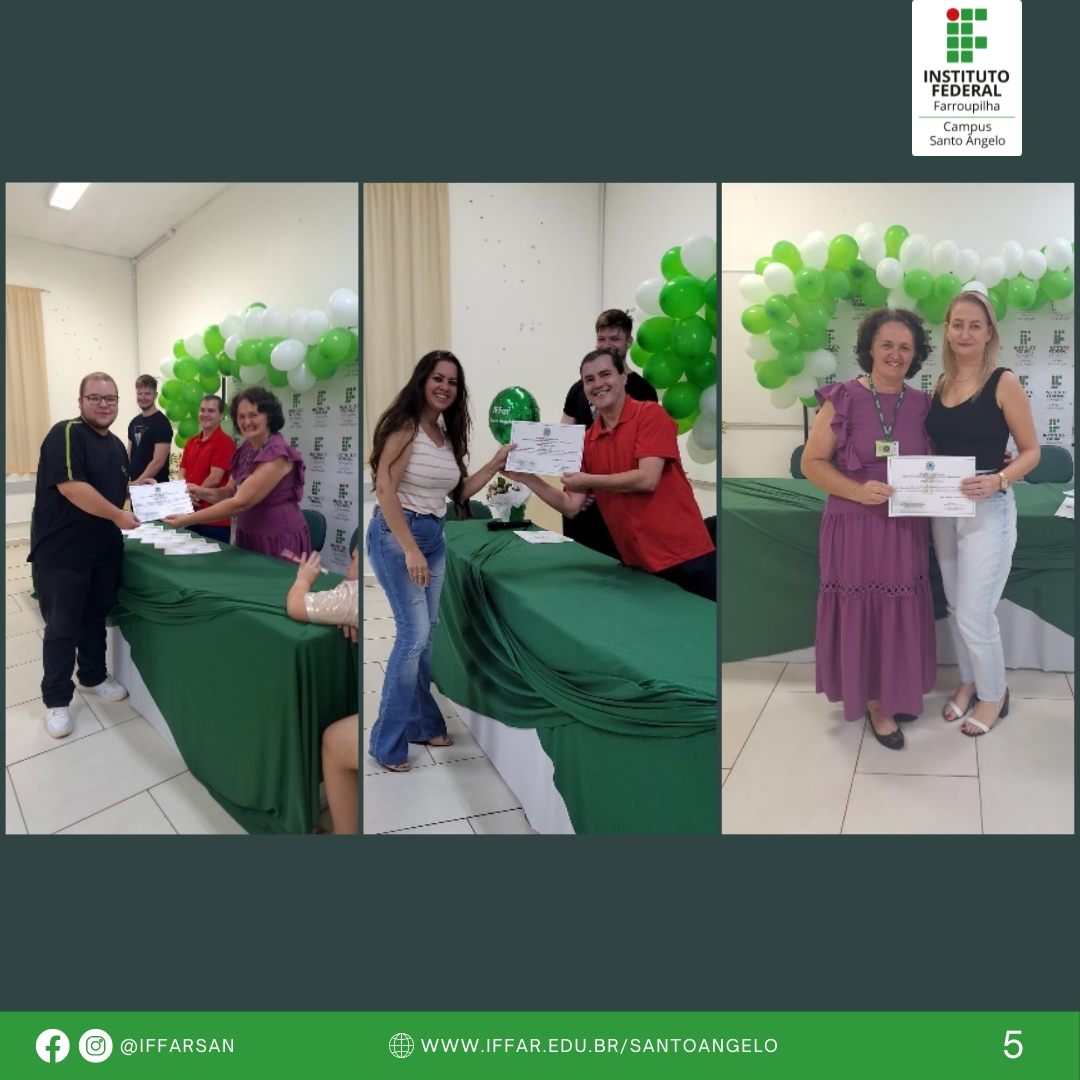 No último dia 05/04/2024 ocorreu à solenidade de entrega dos Certificados aos discentes que concluíram o Projeto de Ensino: “Interpretação de Exames Laboratoriais Séricos”. O evento ocorreu nas dependências do Instituto Federal Farroupilha – Campus Santo Ângelo. Participaram do Projeto alunos em formação do Curso Técnico em Enfermagem e quinze (15) educandos receberam a certificação.