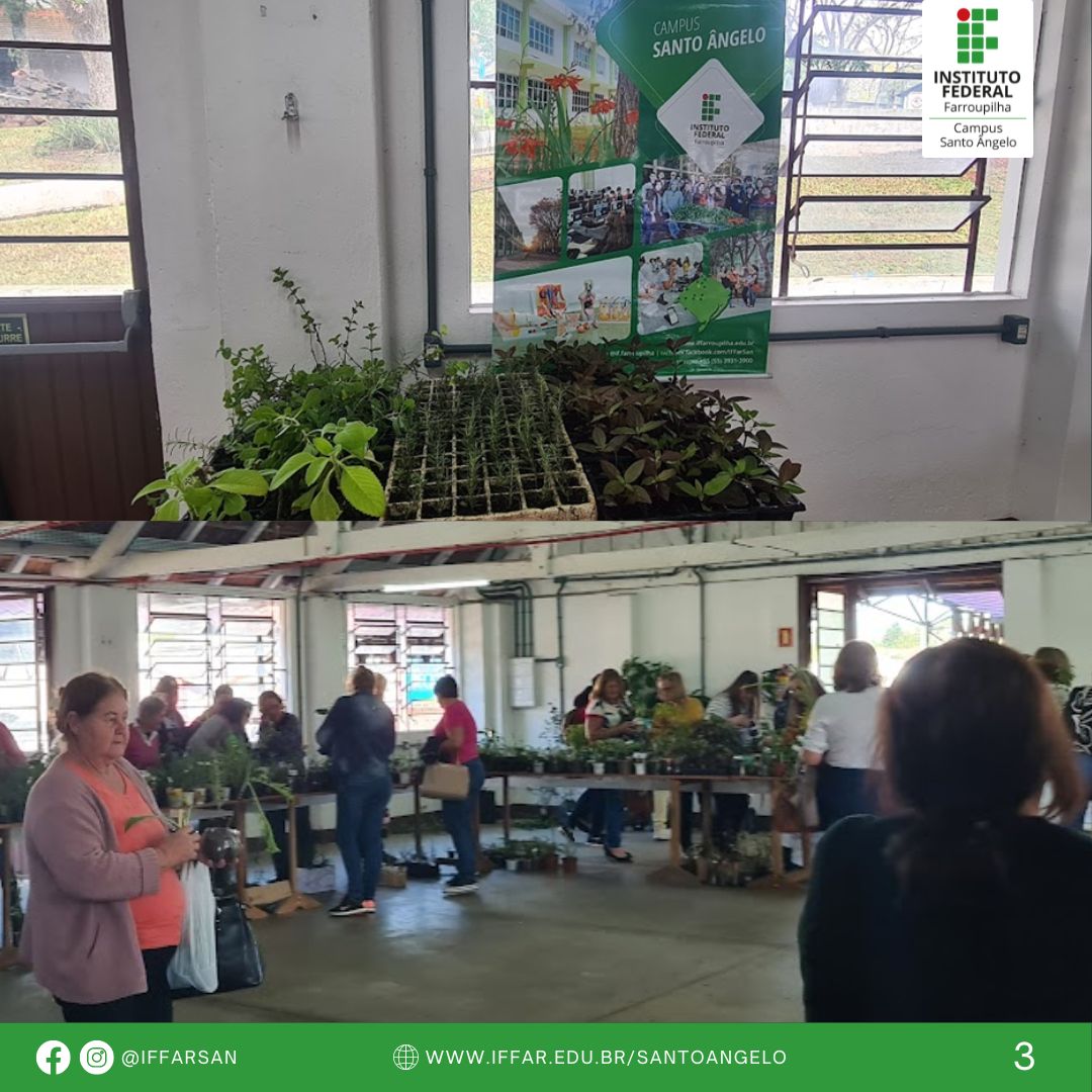 No evento, o IFFar - Campus Santo Ângelo, por meio do projeto de extensão: “Agrobiodiversidade: Valorização de Plantas Bioativas na região Noroeste e Missões/RS”, coordenado pela profª Elaine Luiza Biacchi Vione, contribuiu com mais de 200 mudas de plantas bioativas (medicinais, aromáticas e condimentares), que conjuntamente com as sementes e mudas disponibilizadas por Clubes de Mães e Banrisul, foram distribuídas a mais de 1400 participantes.