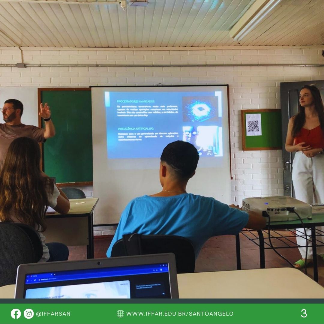 Os estudantes do curso de Licenciatura em Computação do IFFar - Campus Santo Ângelo, Camilla Luisa Rustick Fanzlau e Leandro Ventura Farias, organizaram um curso de hardware denominado "Conhecendo Computadores: Uma Imersão na Introdução de Hardware" para os alunos do nono ano da Escola Estadual de Ensino Fundamental Ulysses Rodrigues, em Santo Ângelo.