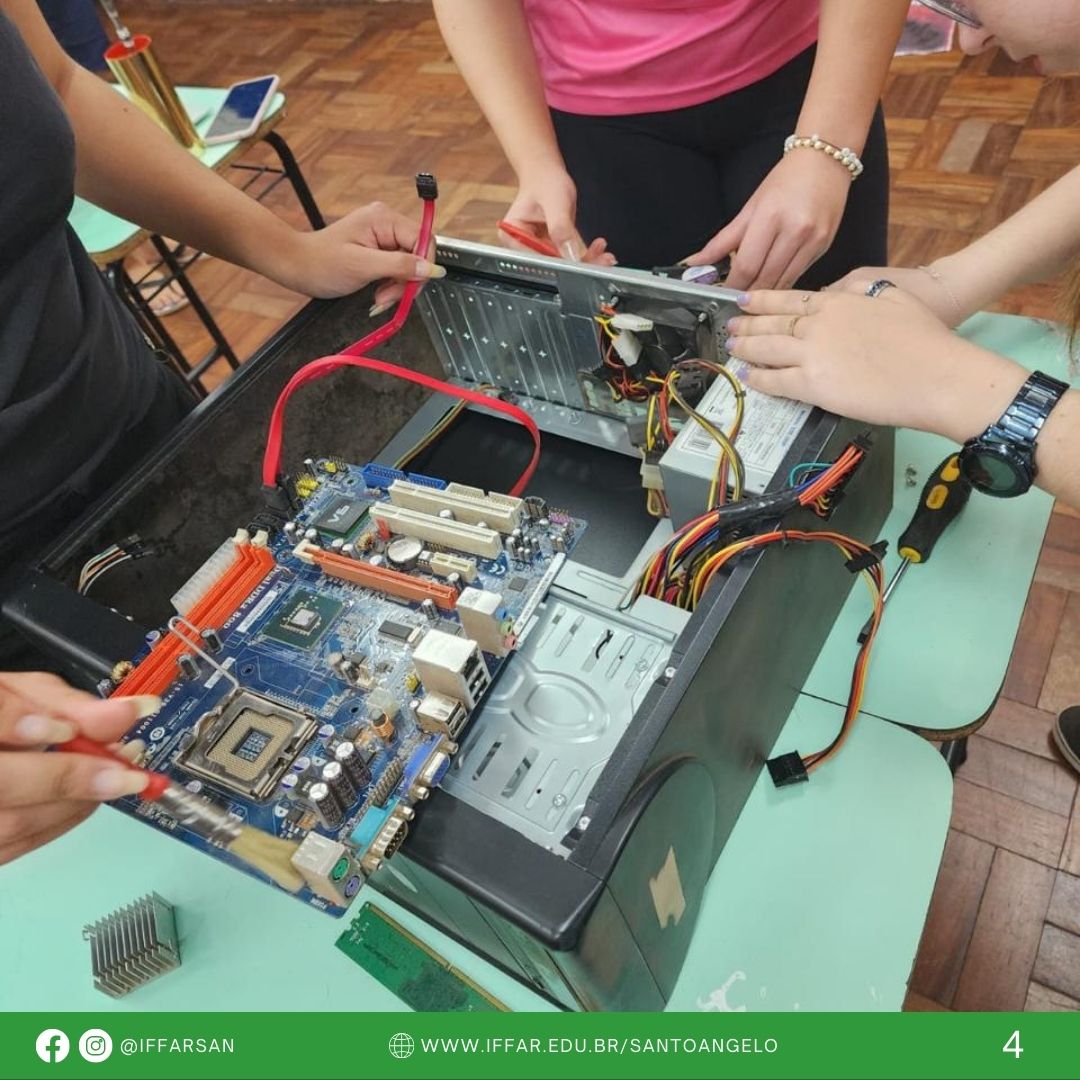 As aulas práticas permitiram que os alunos desmontassem e montassem computadores, realizando tarefas de limpeza e manutenção. Eles também foram instruídos em práticas de manutenção preventiva e corretiva, além de receberem dicas de segurança essenciais para o manuseio adequado dos equipamentos.