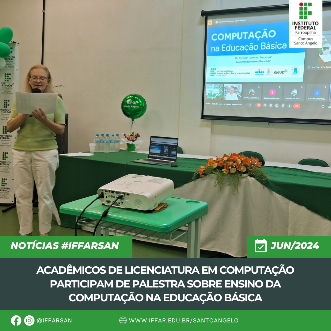 Nos dias 13 e 14 de junho o professor e pesquisador do IFFar Campus Panambi, socializou seus estudos, pesquisas e experiências com a comunidade acadêmica do IFFar, Campus Santo Ângelo.