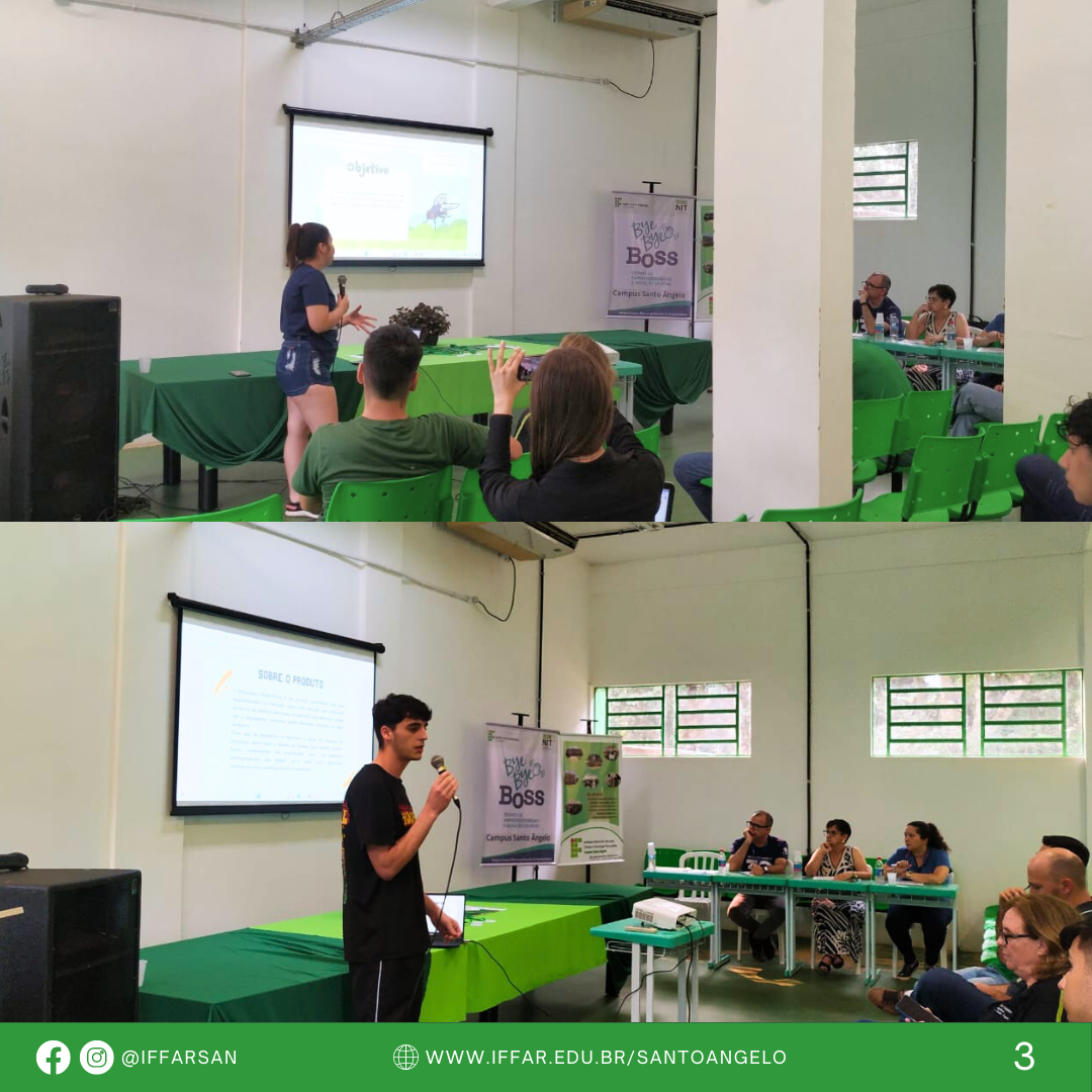 No Campus de Santo Ângelo a etapa local aconteceu no dia 24 de setembro, organizada pelos professores: Fátima Regina Zan e Nelson Rodrigues Carvalho (representantes Local do ByeByeBoss) e Luís Henrique Loose (DPEP e Presidente do Núcleo de Inovação e Transferência de Tecnologia (NIT). A banca avaliadora foi composta por Romulo Madrid de Mello (Gestor Administrativo do Parque Científico e Tecnológico das Missões - TecnoURI Missões), as professoras Rosane Rodrigues Pagno (IFFar) e Josiele Rodrigues Fão (IFFar). Se inscreveram para os Pitches, 6 (Seis equipes) com a participação de 21 alunos, sendo este o ano com maior número de equipes inscritas no evento.