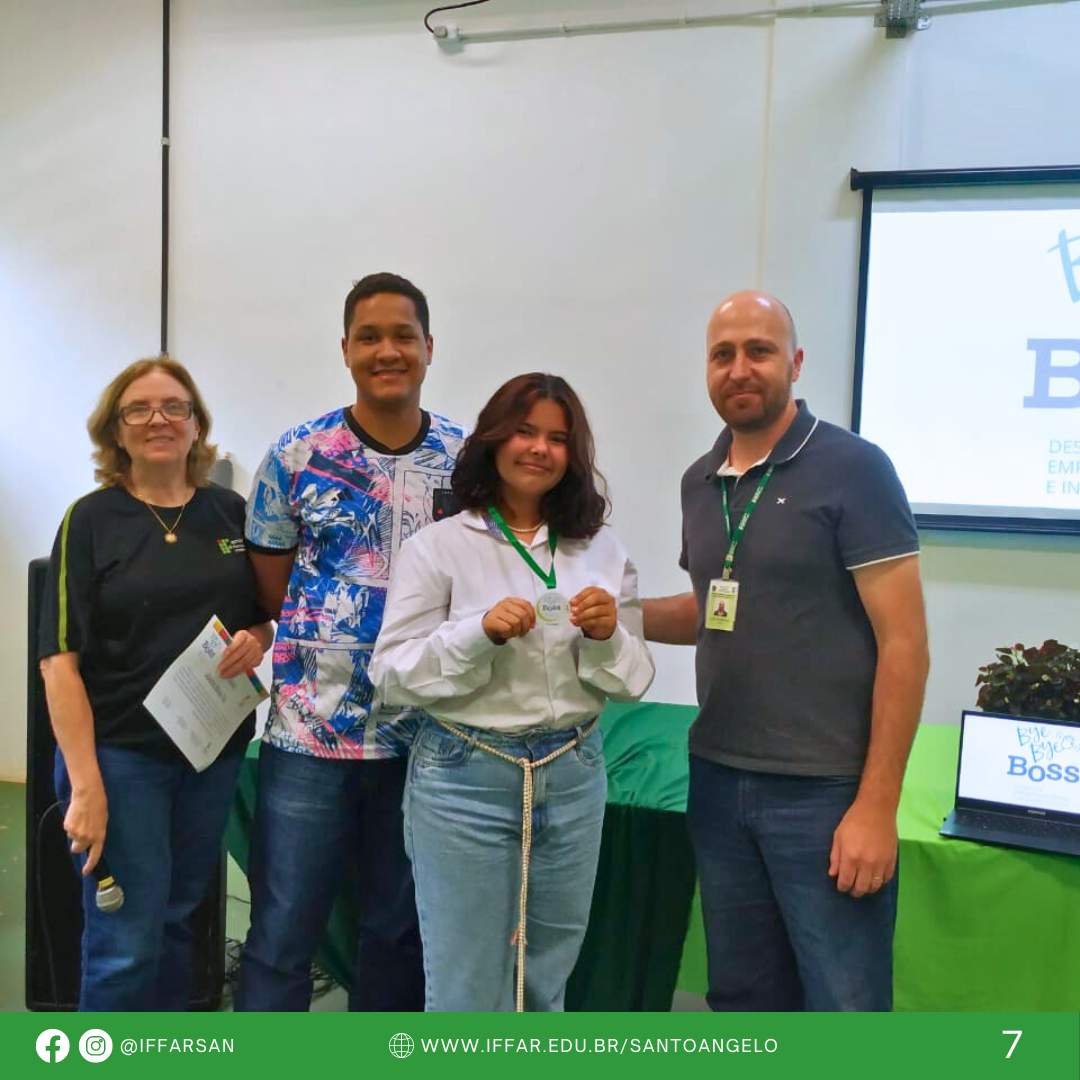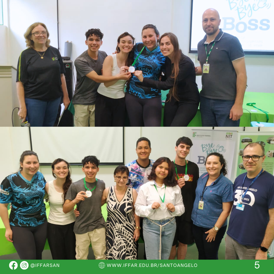 Em primeiro lugar foi selecionada a Equipe Diversity dos alunos(as) Larissa Maciel Paulus, Giulia de Oliveira Souza, Fernando Dorneles da Silva, Isadora Teischmann da Silva, Ana Beatriz de Sousa Silva, mentoras professoras Karlise Soares Nascimento e Hayatt Mansour.