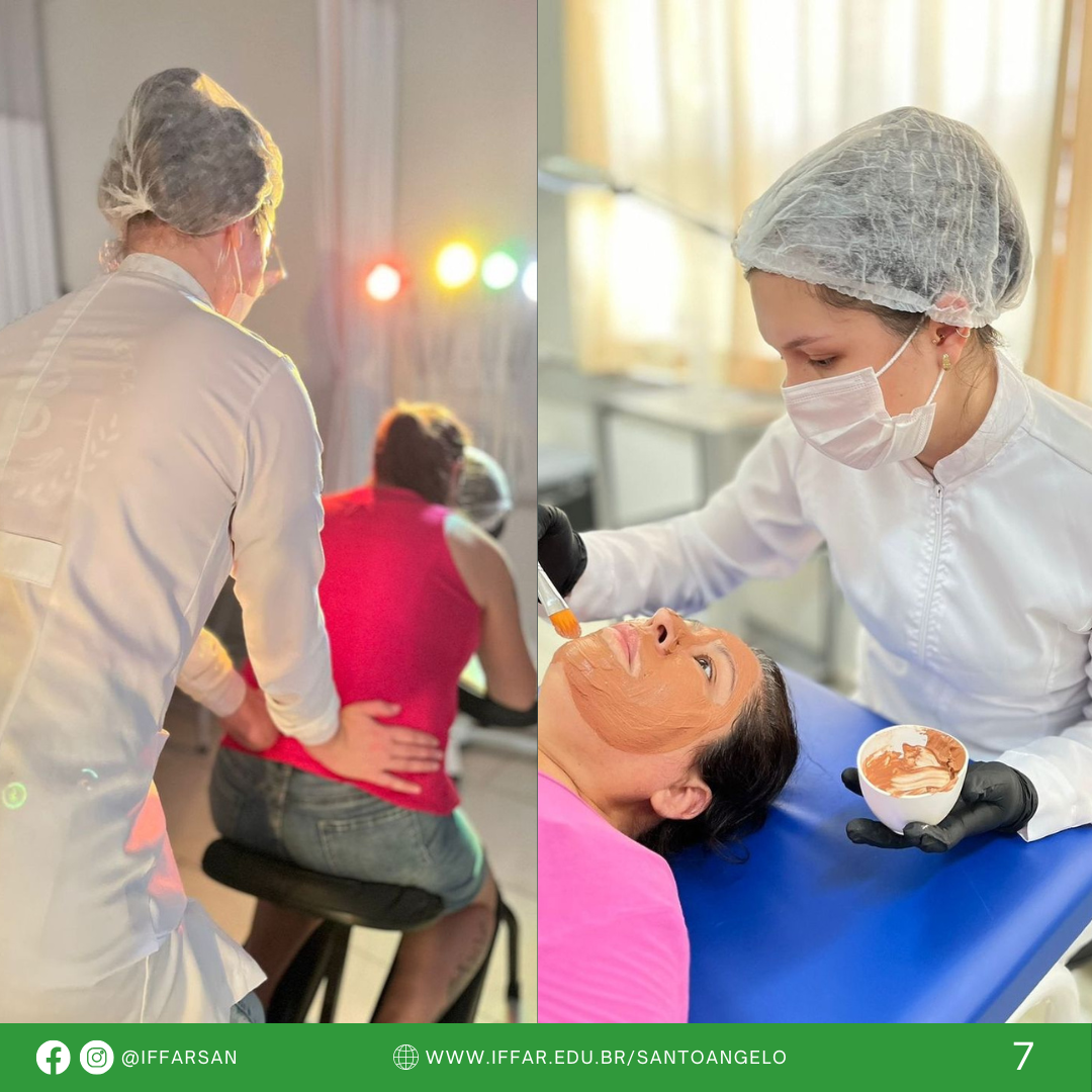 Também foram recebidos nos laboratórios de Estética e Enfermagem, onde os alunos dos respectivos cursos prestaram atendimento de design de sobrancelhas, argiloterapia, spa de mãos, quick massage, aferição de pressão arterial e exame de glicemia capilar.