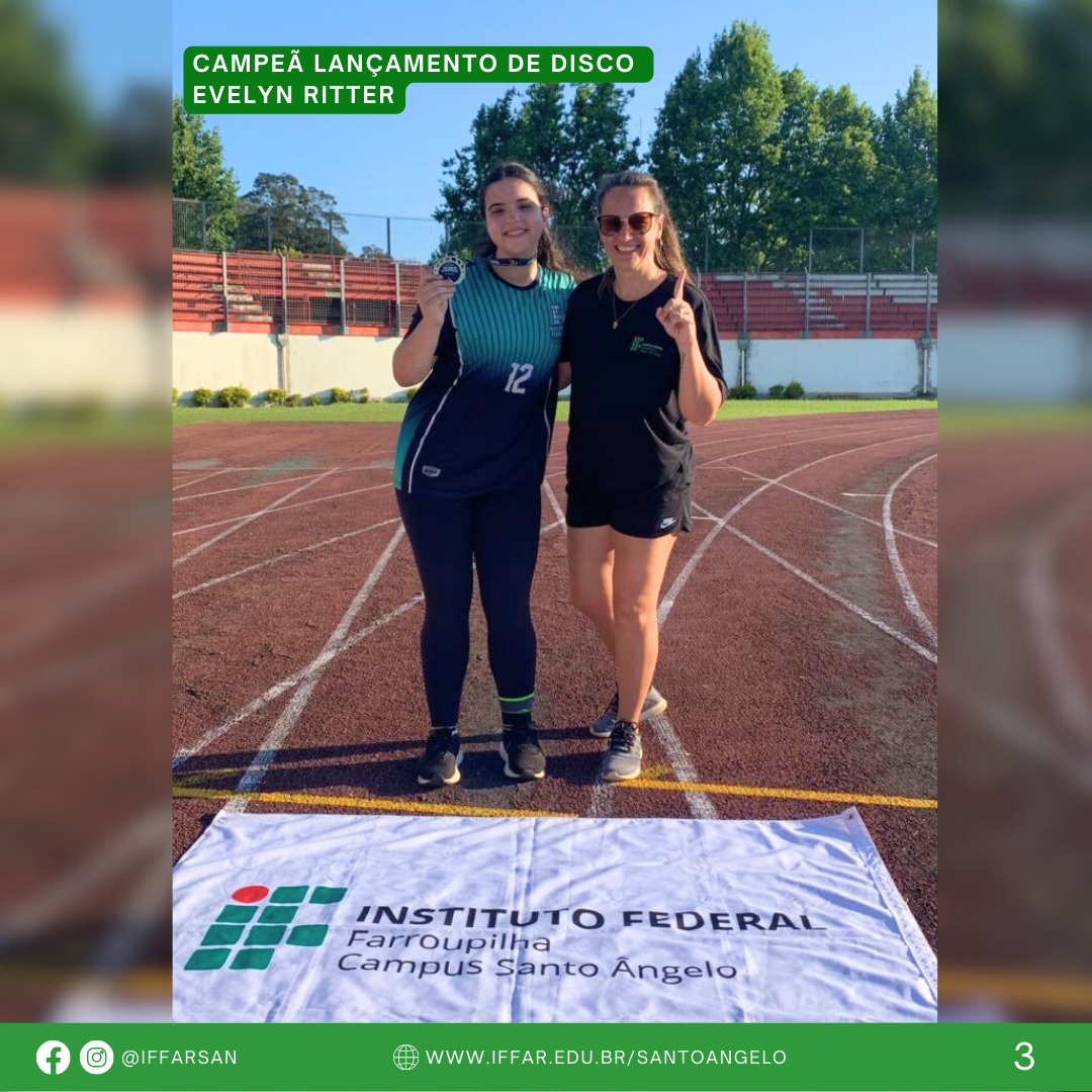 Um dos maiores destaques foi a atleta Evelyn Ritter, que se sagrou CAMPEÃ ESTADUAL no lançamento de disco, atingindo a impressionante marca de 23 metros e 1 centímetro, garantindo seu lugar no topo do pódio.